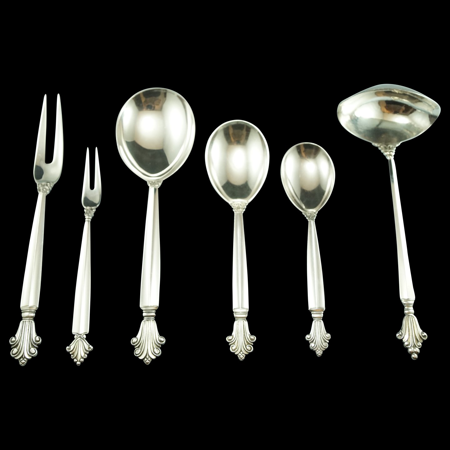 Bestik af sterling sølv til 12 personer.