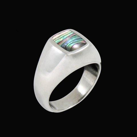 Palle Bisgaard - Denmark. Ring i sterlingsølv med Abelone #6. 1960erne
