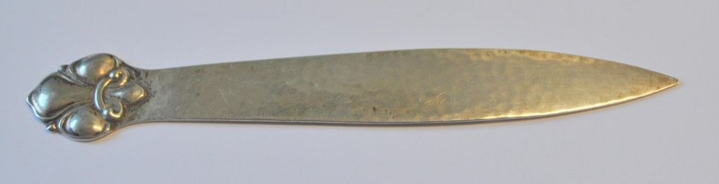 Hammered letter opener in silver, 1923, Denmark. Decorated with the French lily. Stamped. Length: 13 cm.