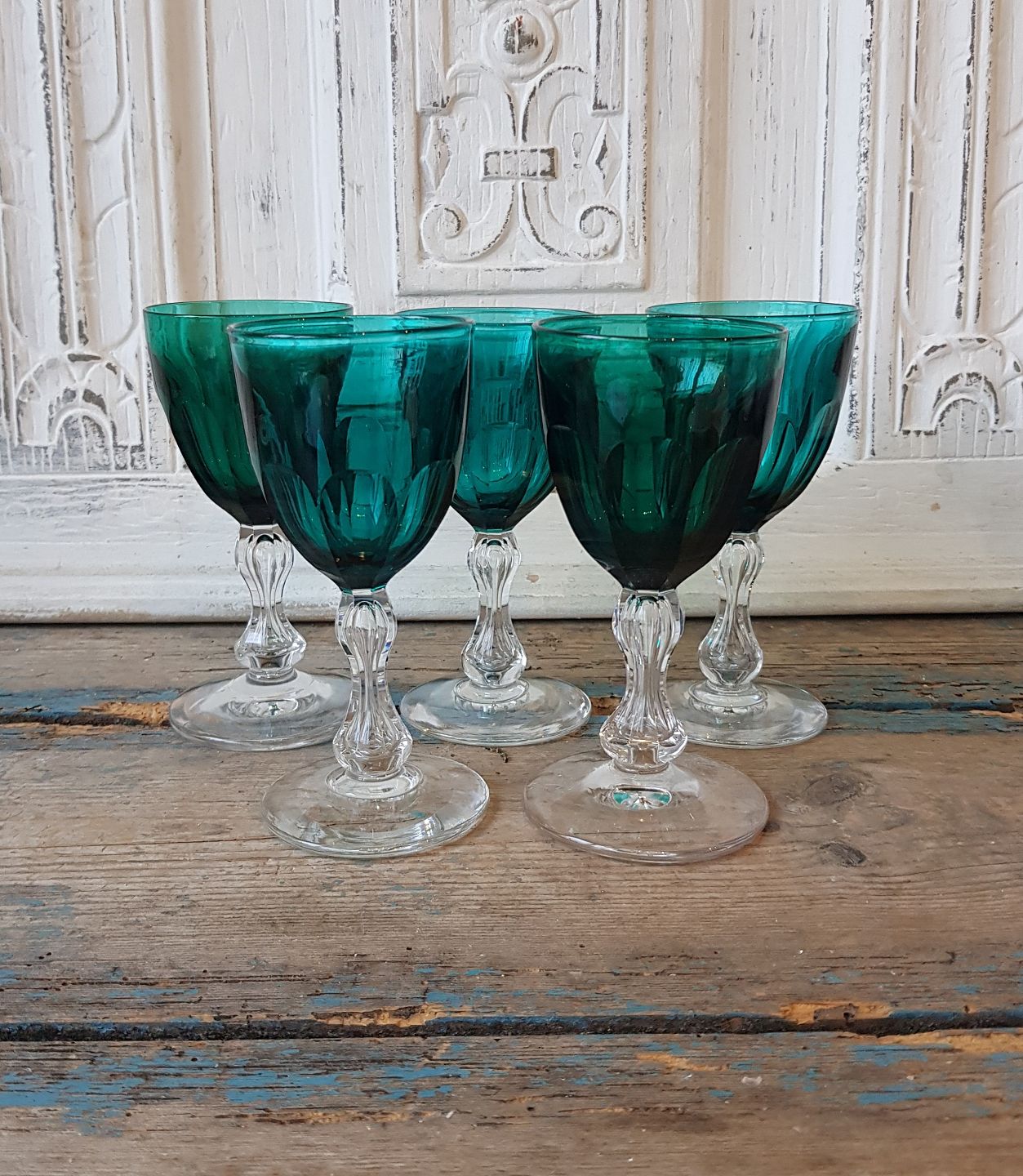 Smukke hvidvins glas i krystal med mørkegrøn kumme.