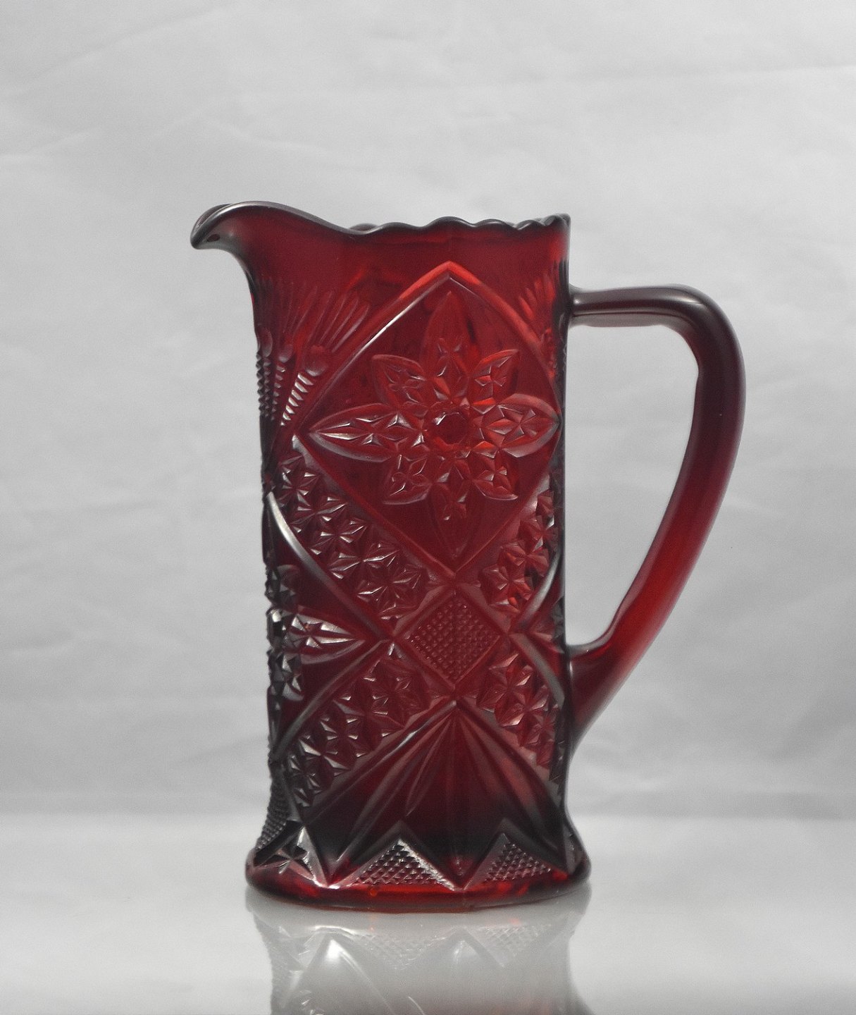 "Art-deco" kande i rødt glas. Kanden er en Brochwitz-Zürich kande