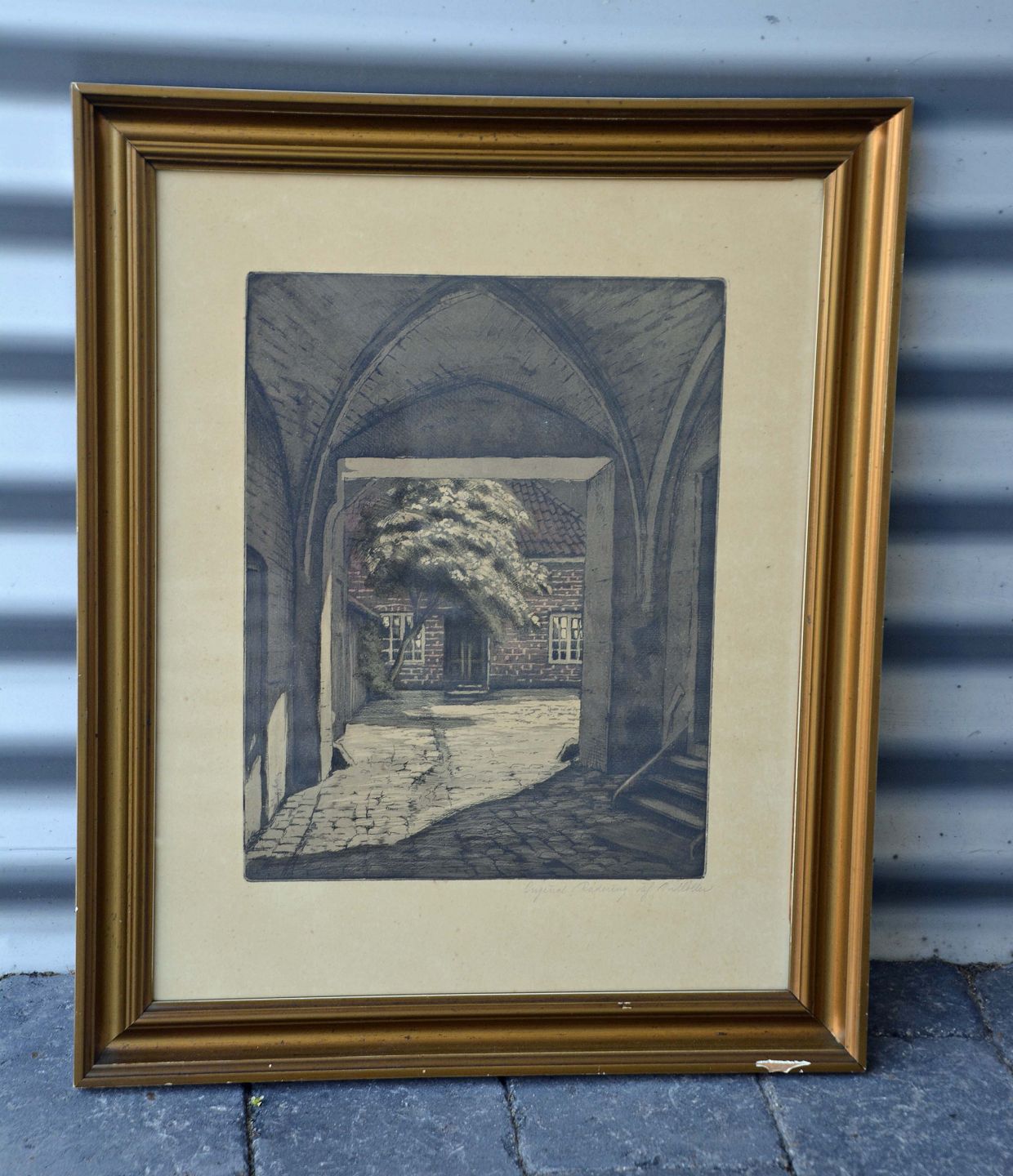 Radering med motiv af indgang til gårdområde af Peter Møller