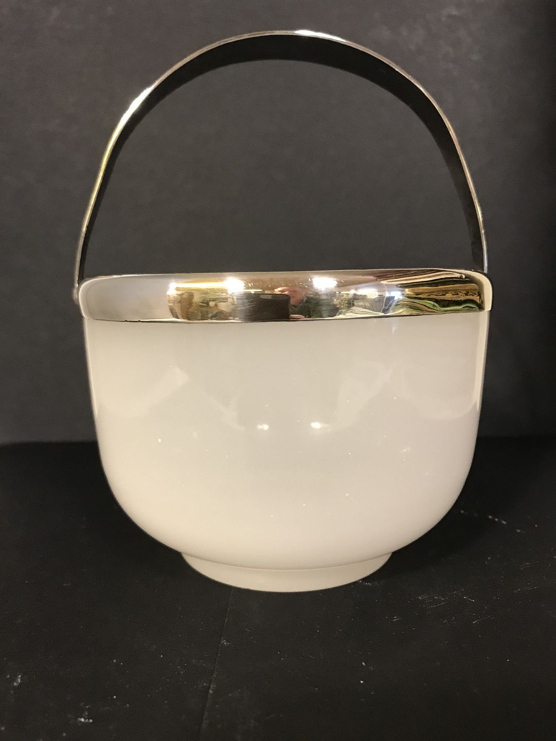 Sukkerskål med hank. Hvidt glas. Vi har fl. På lager.