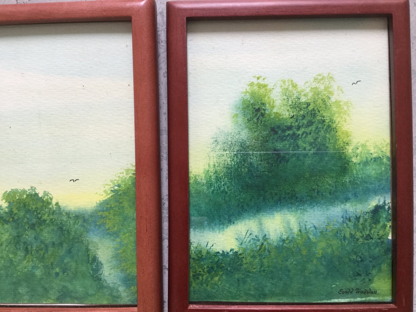 3 malerier/pasteller af Evald Trudslev.