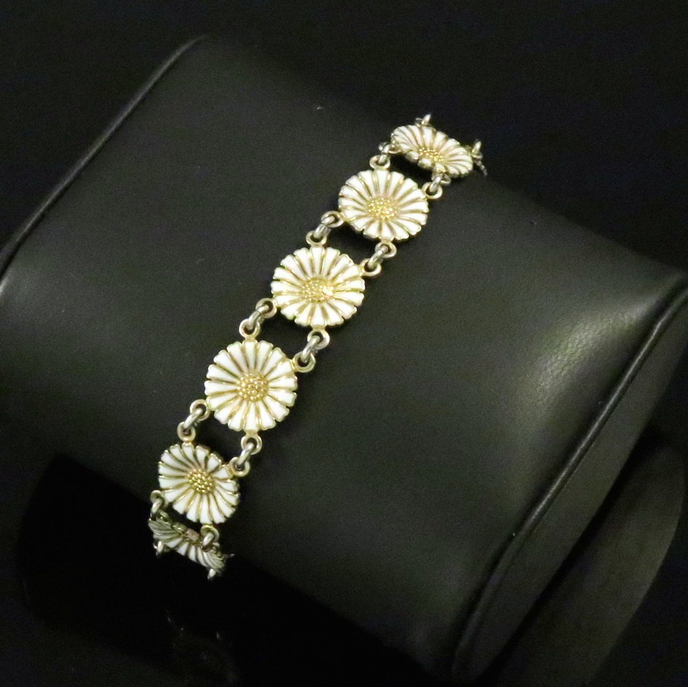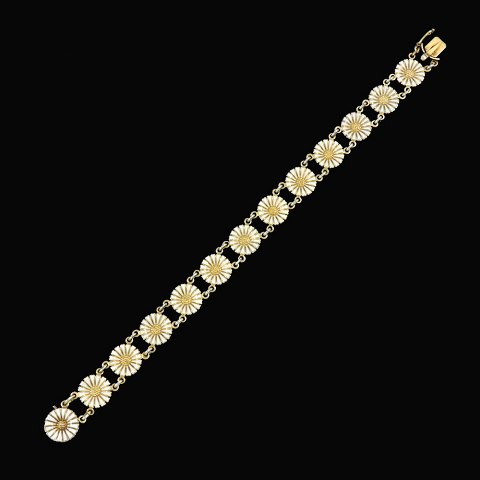 A. Michelsen 11 mm Marguerit / Daisy Armbånd i Forgyldt sterling Sølv og hvid emalje.