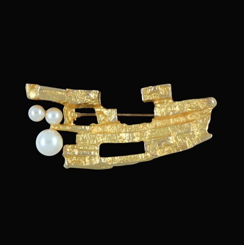 Lapponia. Broche i 14k guld med perler - Björn Weckström 1983