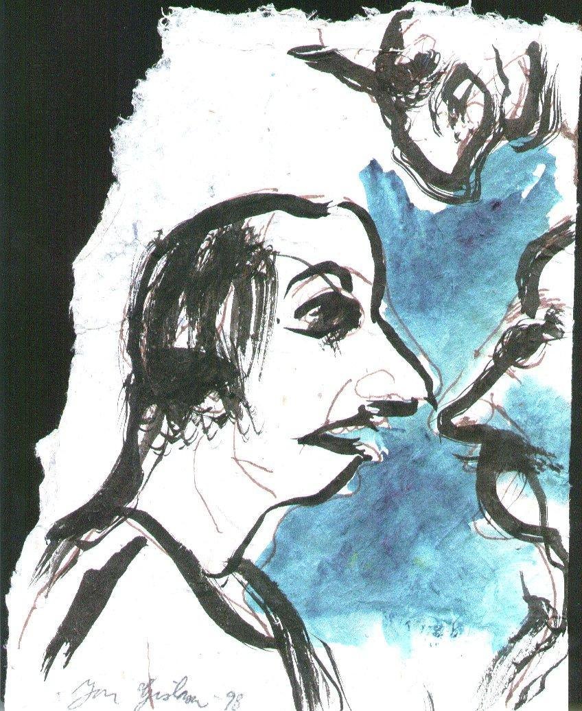 Jon Gislason (1955-): Tre personer i profil. Akvarel/tusch på papir. Sign.; Jon Gislason 98 (1998). 26 x 21 cm. Uden ramme.