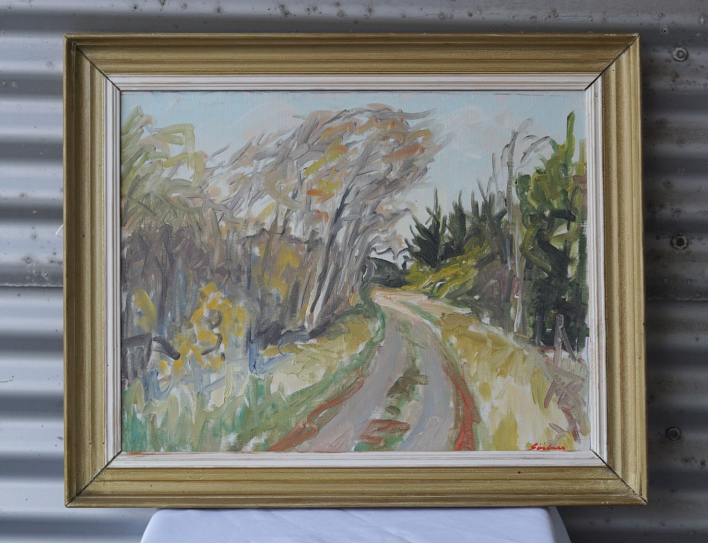 Maleri, olie på lærred, "Skovvej".