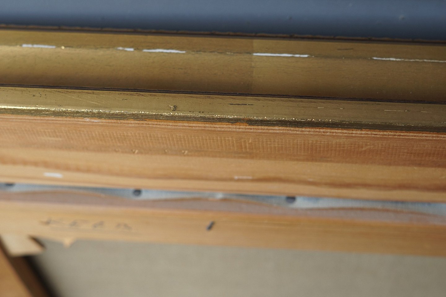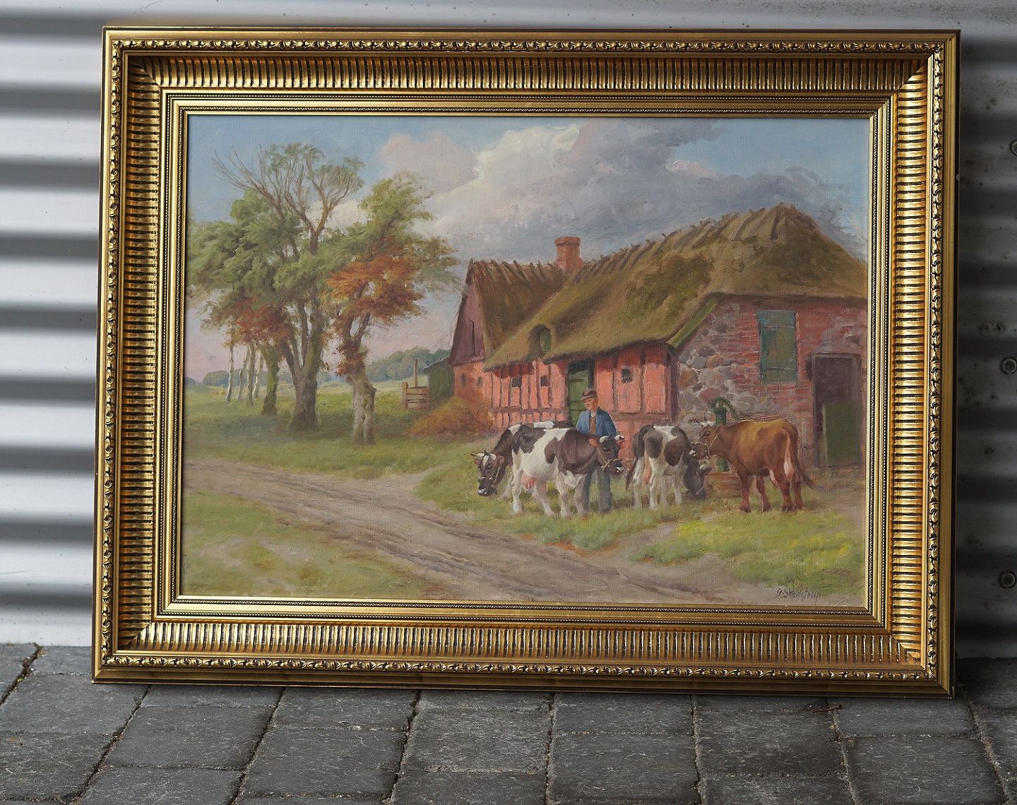 Maleri af bondegård, Olie på lærred, Gårdliv, gård