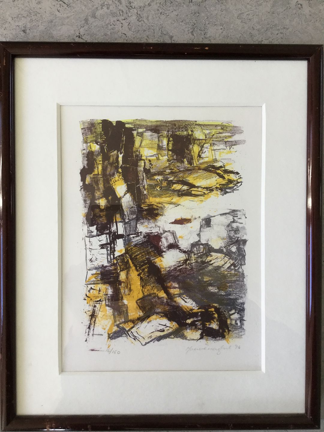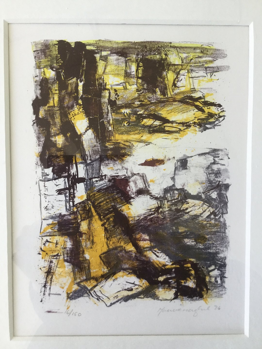 Farvelitografi af Anita Houvenaeghel - Komposition 1996