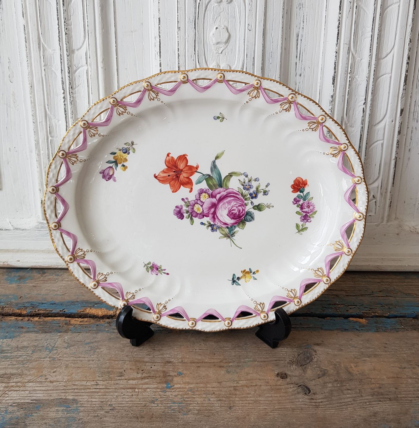Royal Copenhagen Fuld Saksiskblomst fad med gennembrudt kant