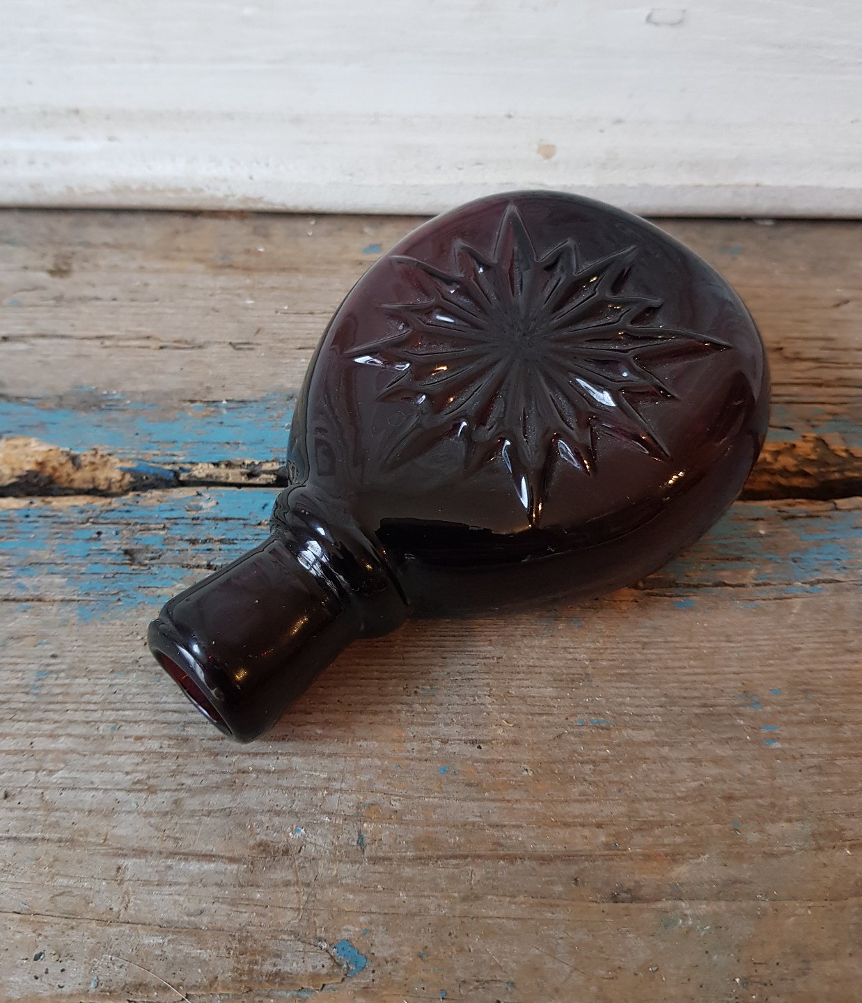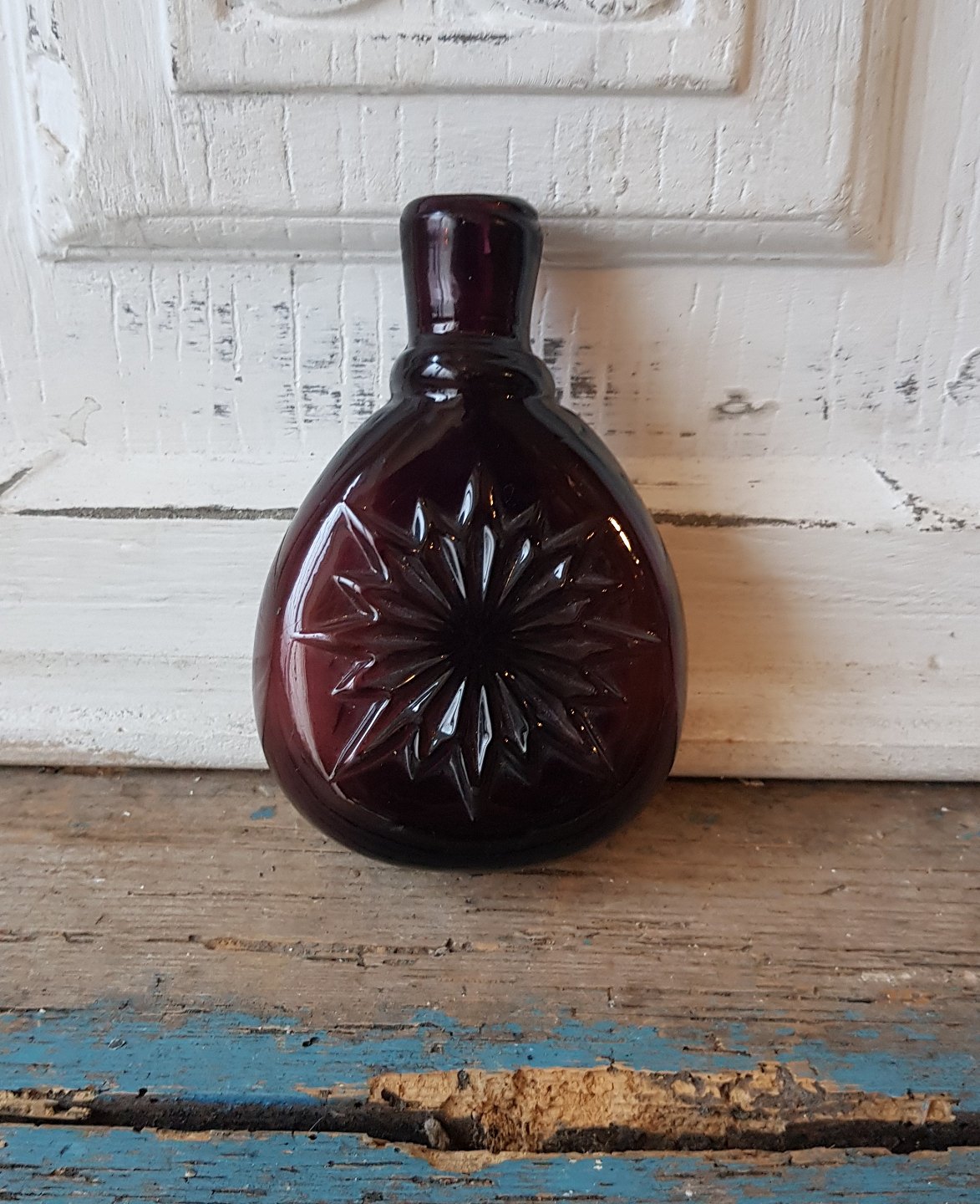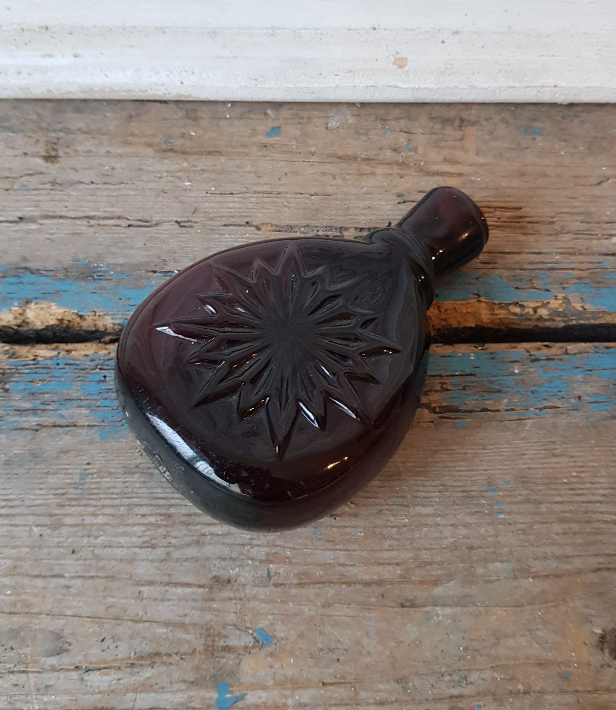 1800tals lommeflaske i manganfarvet glas med stjerne i relief.
