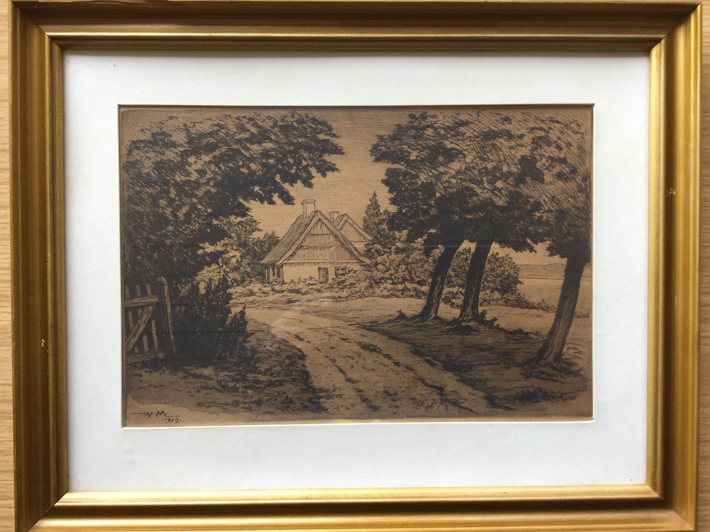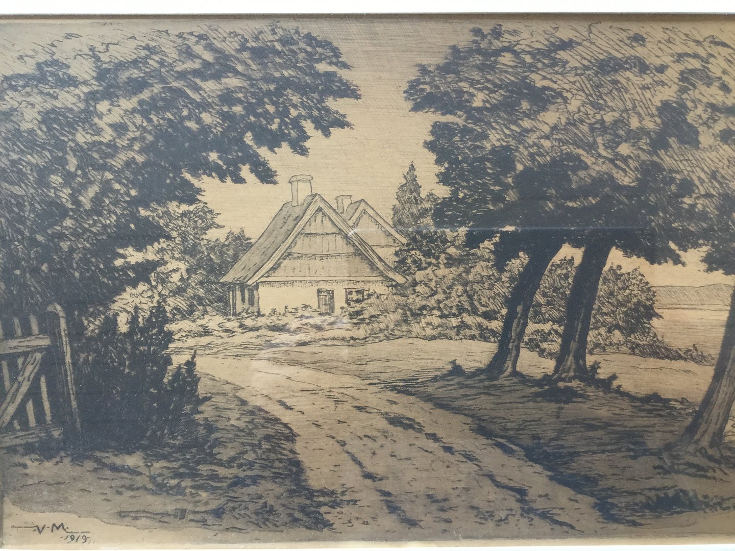 Radering af Valdemar Magaard - Landskab i Odsherred 1919.