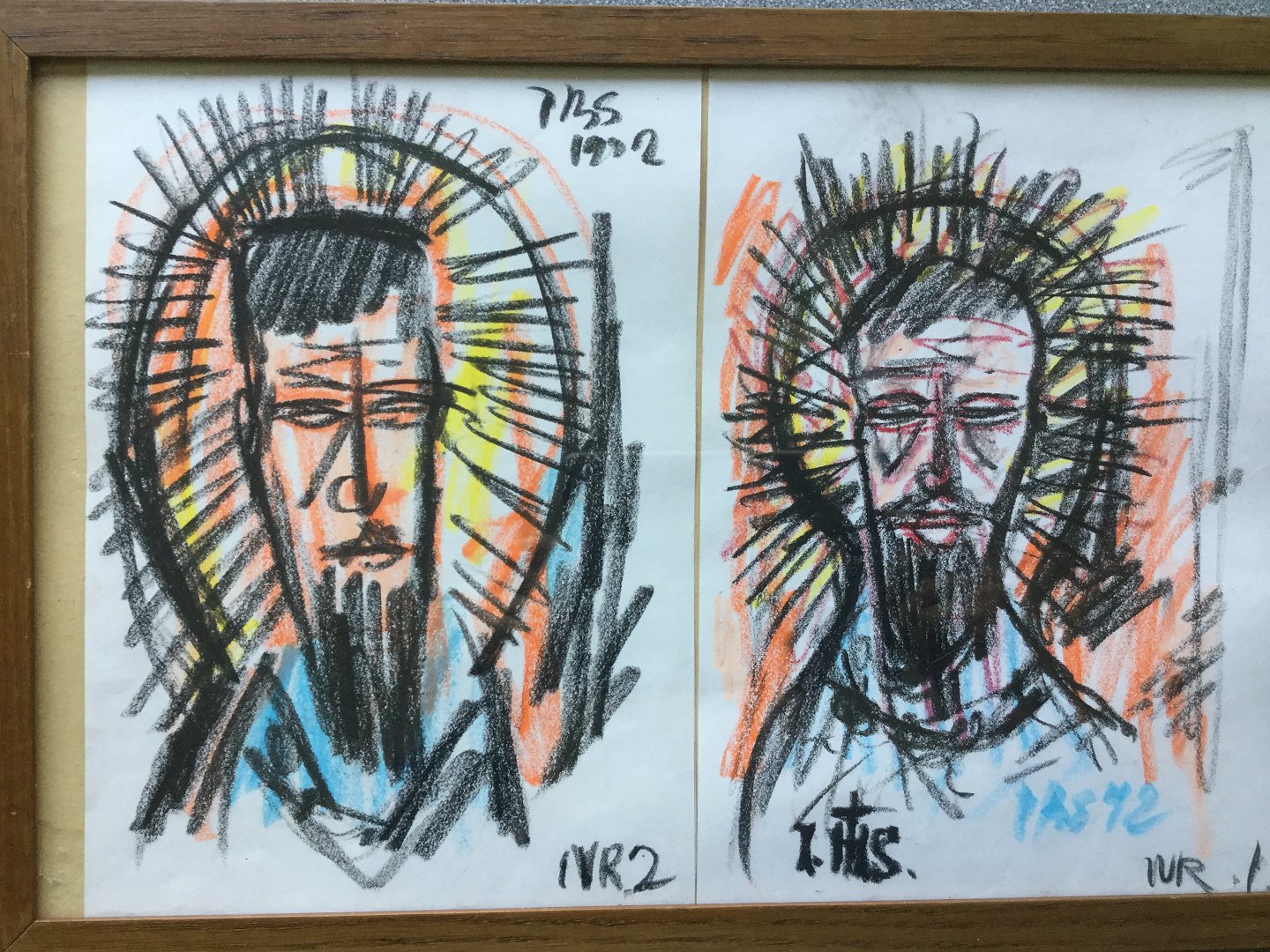 Oliekridt af Peder Brøndum Sørensen - 2 udkast til Kristusbilleder 1972.