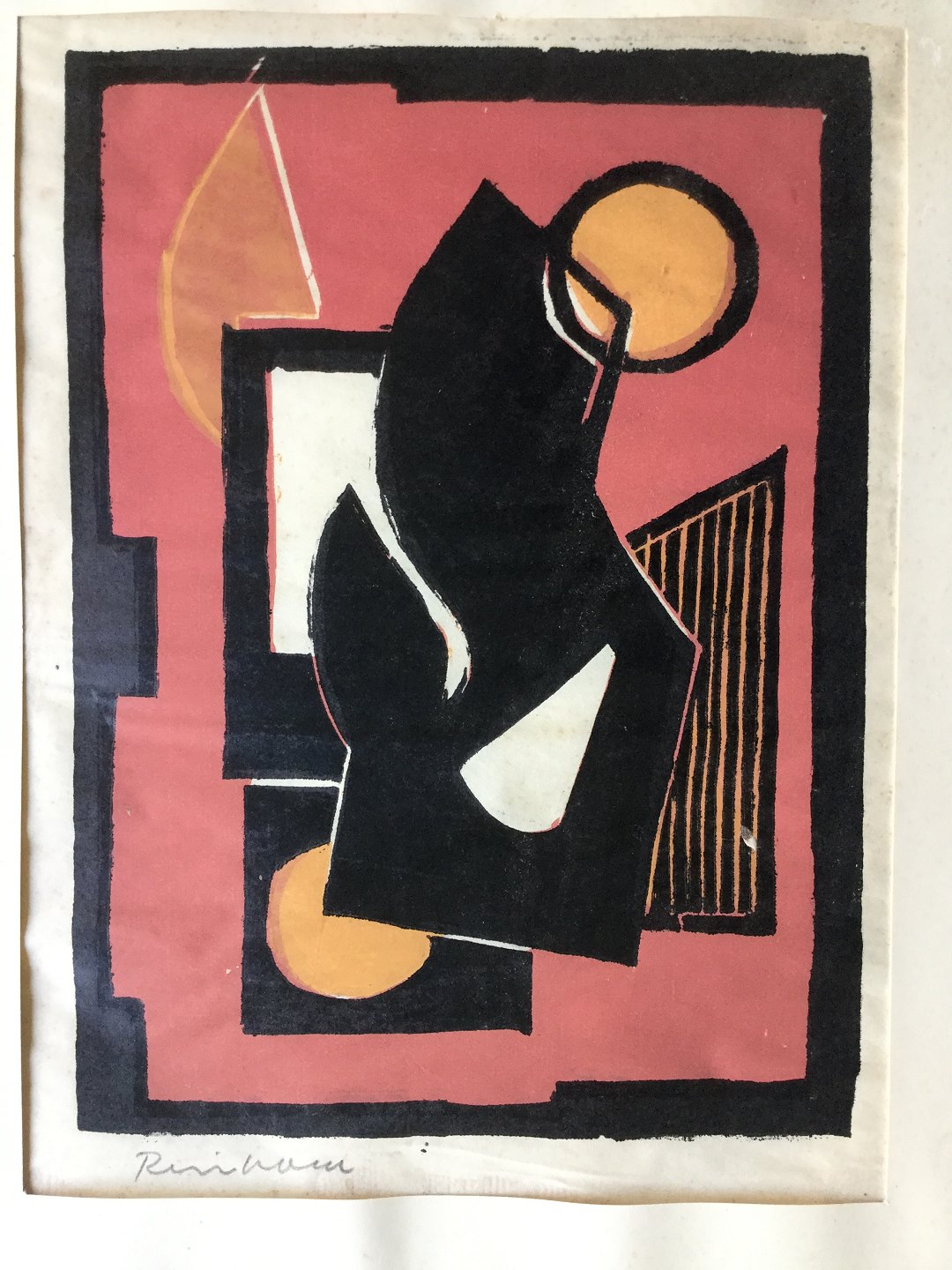 Farvetræsnit af Harald Reinhold - Abstraktion.