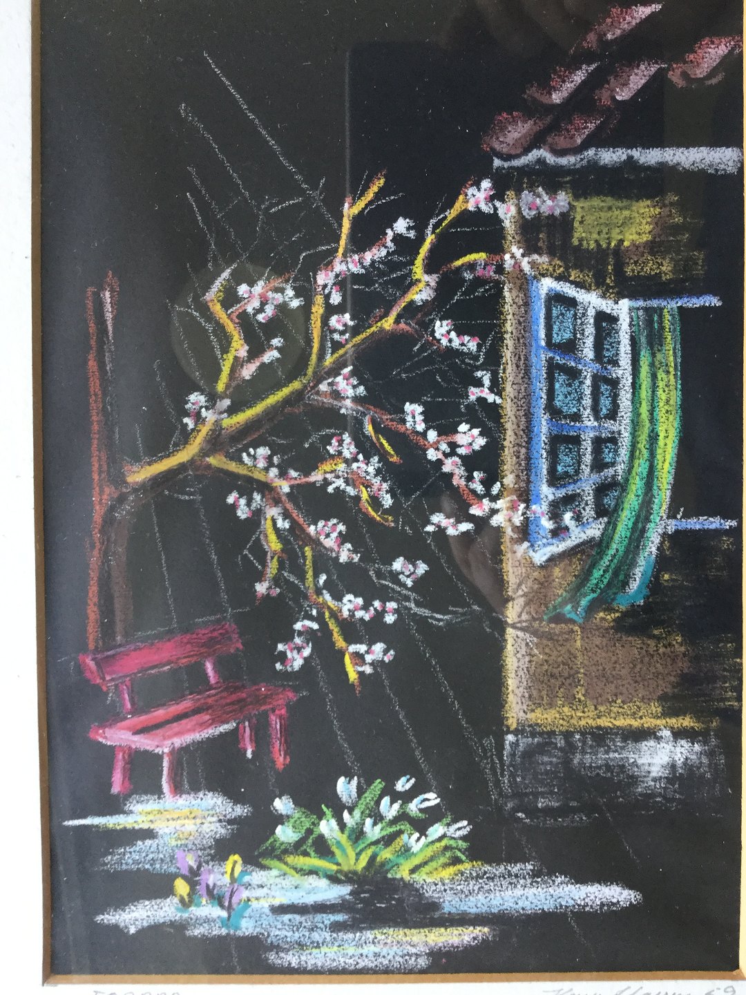 Pastel/farvekridt på papir.