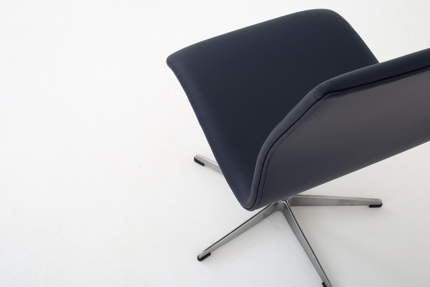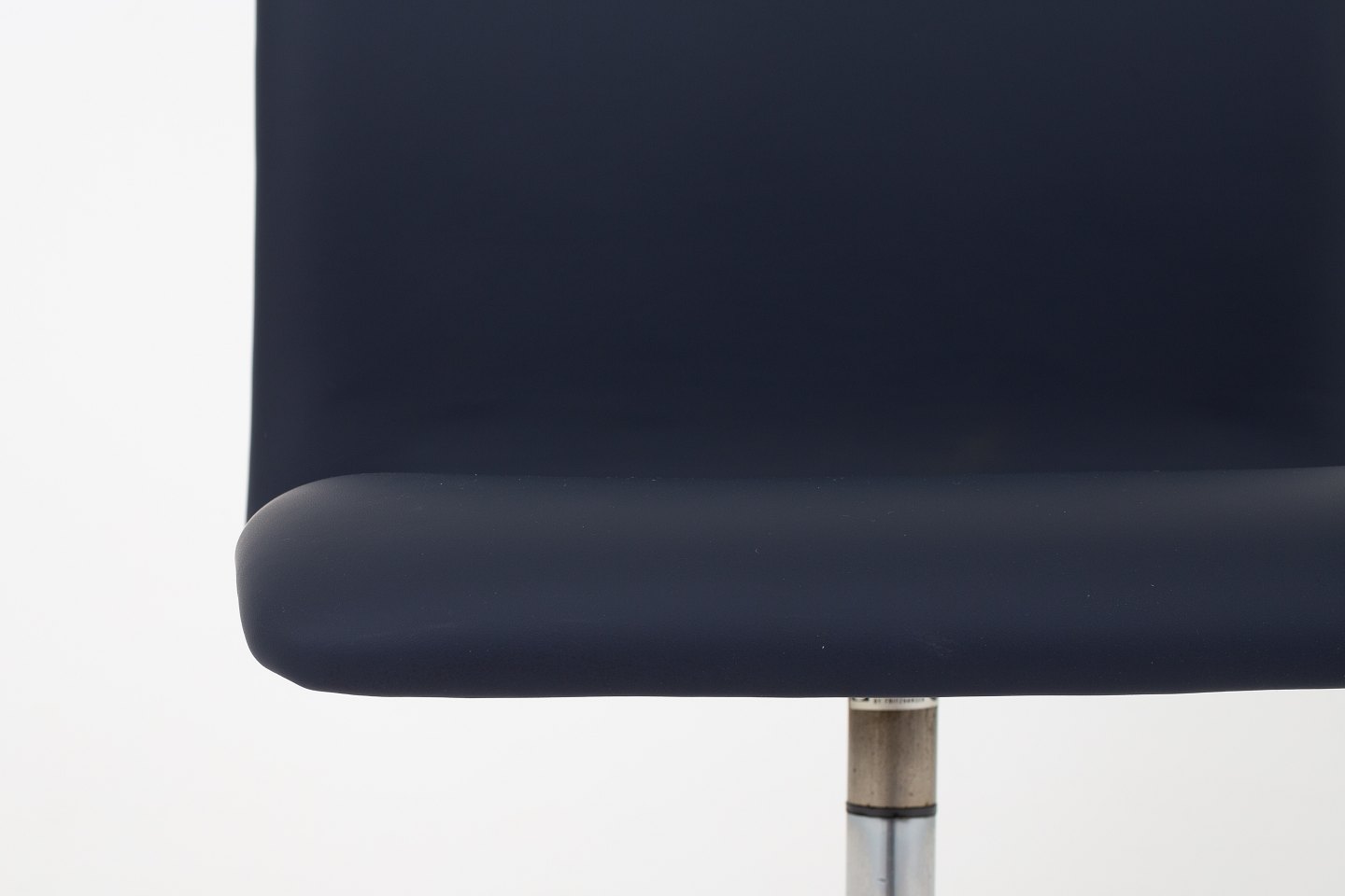 AJ 3171 Oxford-stol nybetrukket i mørkeblåt læder (Savanne Royal Blue) på stel af aluminium. KLASSIK tilbyder polstring af stolen med stof eller læder efter eget ønske. Kontakt os venligst for mere information.