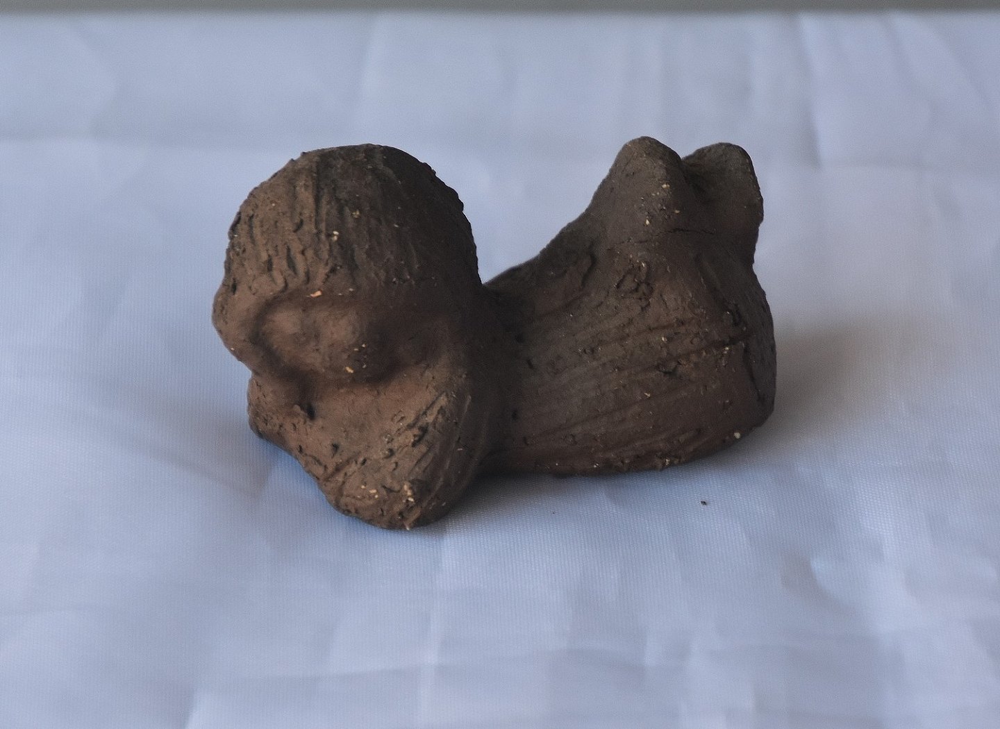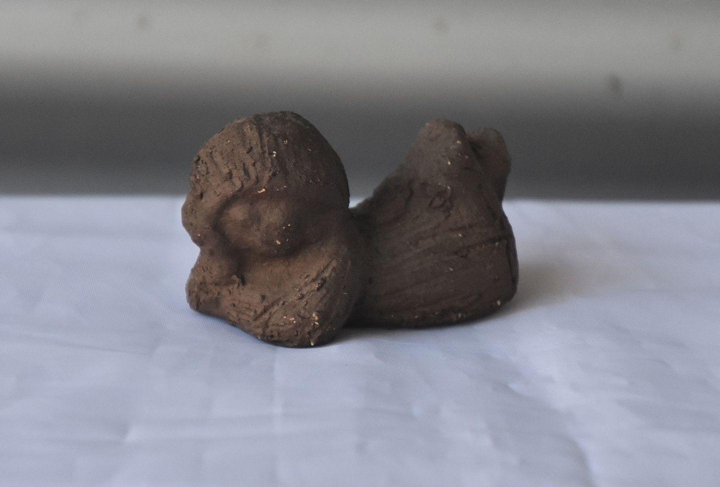 Troldefigur i keramik med motiv af troldepige liggende på maven