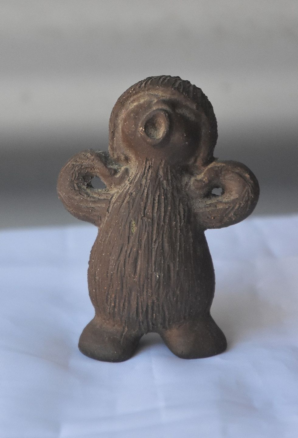 Troldefigur i keramik med motiv af gabende troldepige
