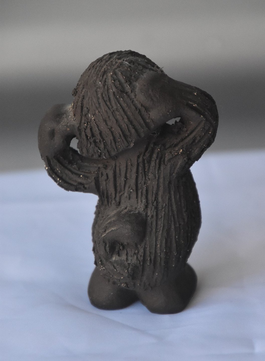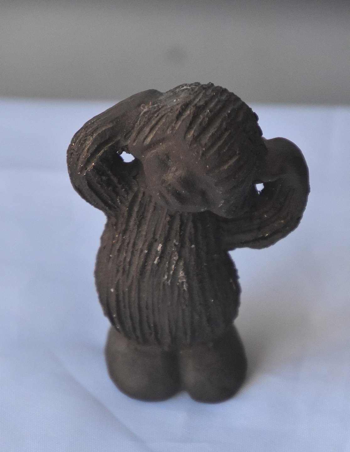 Troldefigur i keramik med motiv af troldpige som holder sig for øret