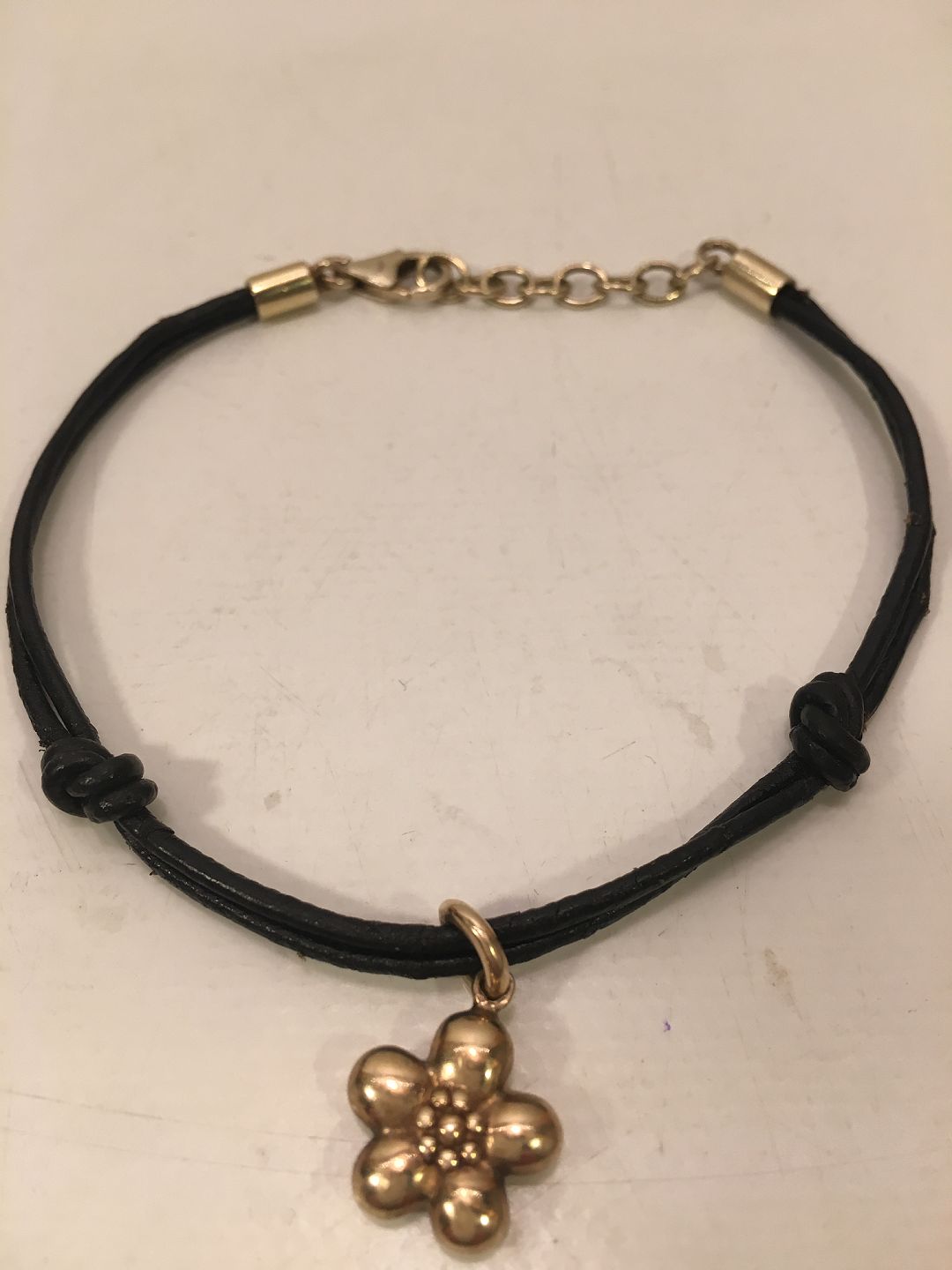 Læder Armbånd med Forgyldt sølvlås og vedhæng