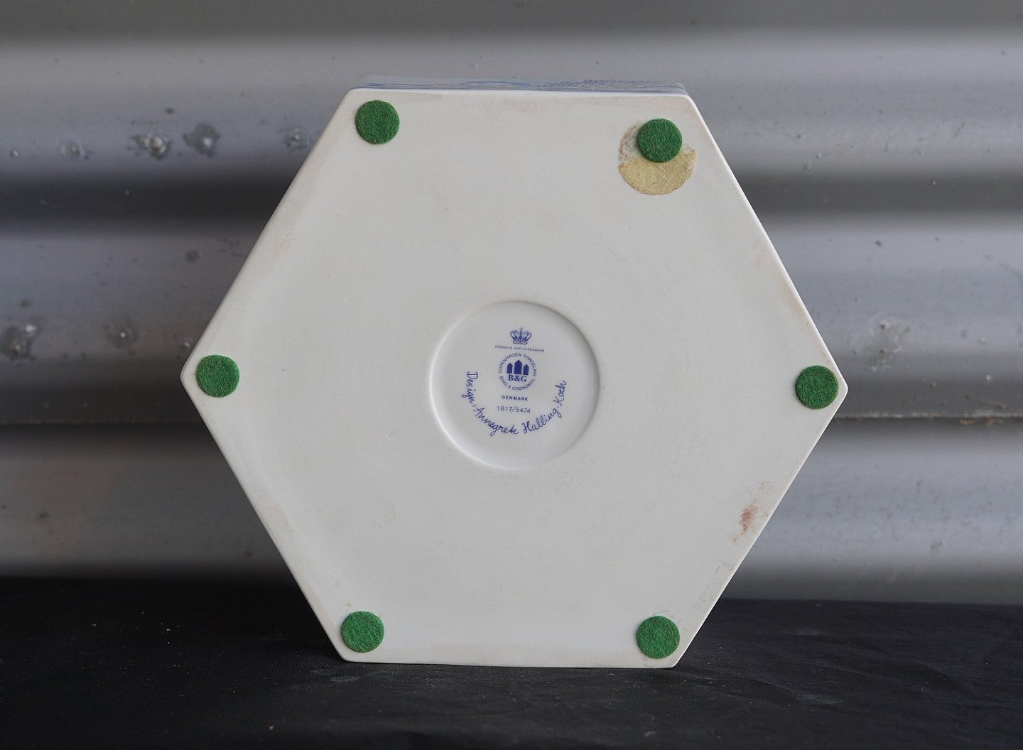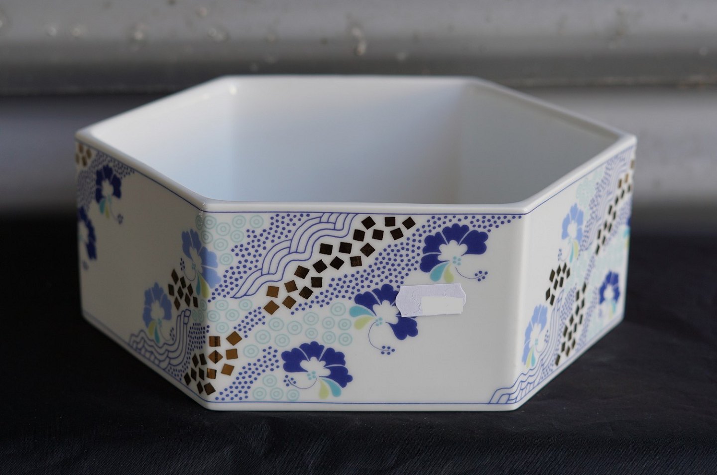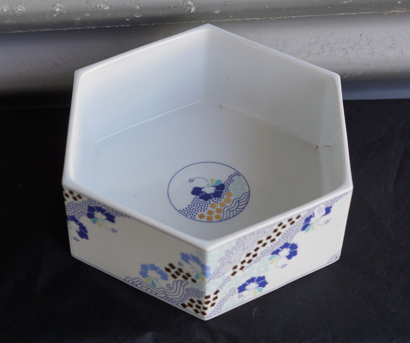 6-kantet skål 1817/5474 Porcelæn dekoreret med trykt motiv og guld