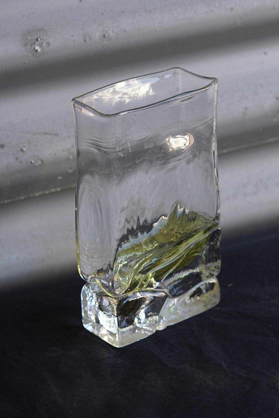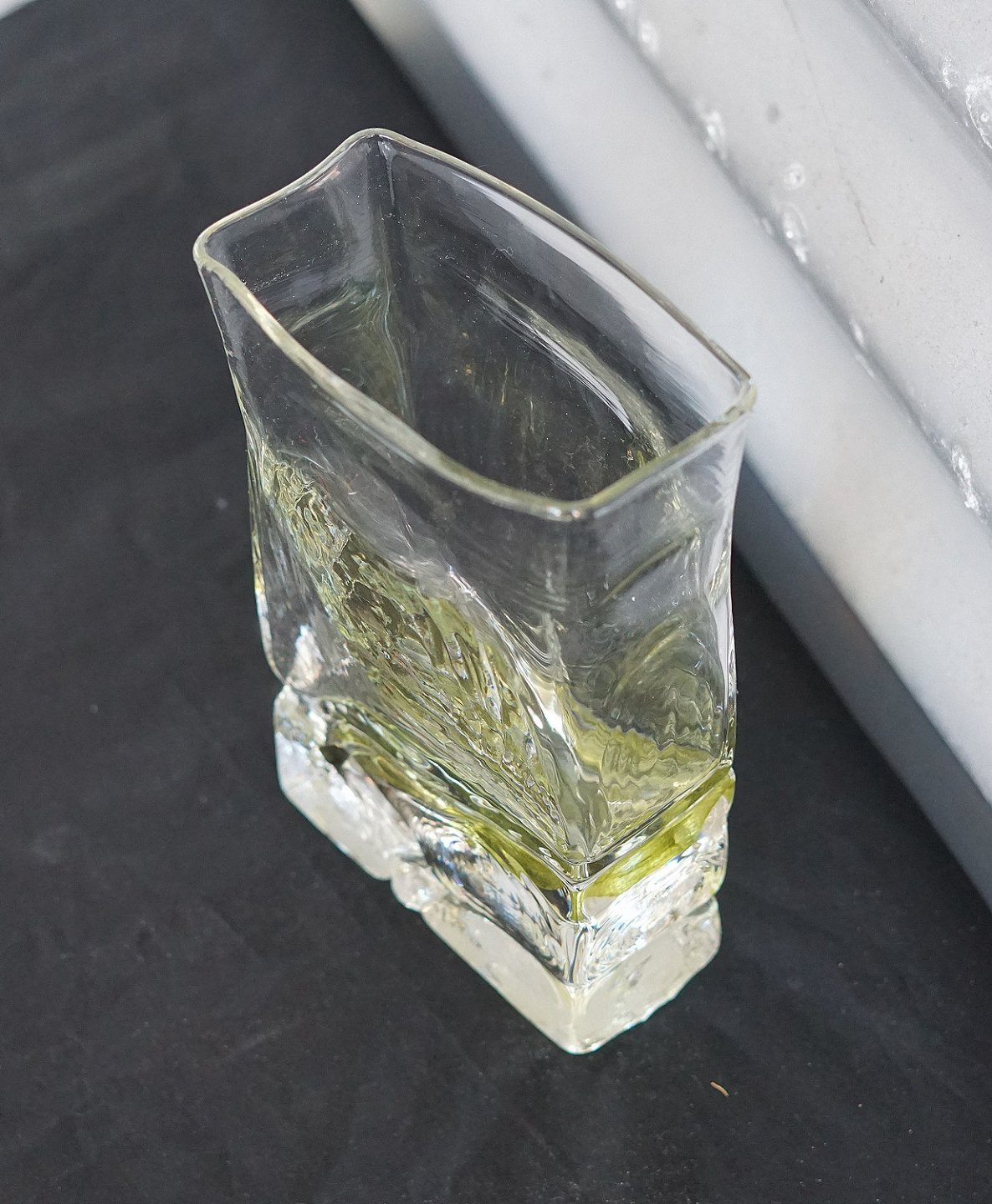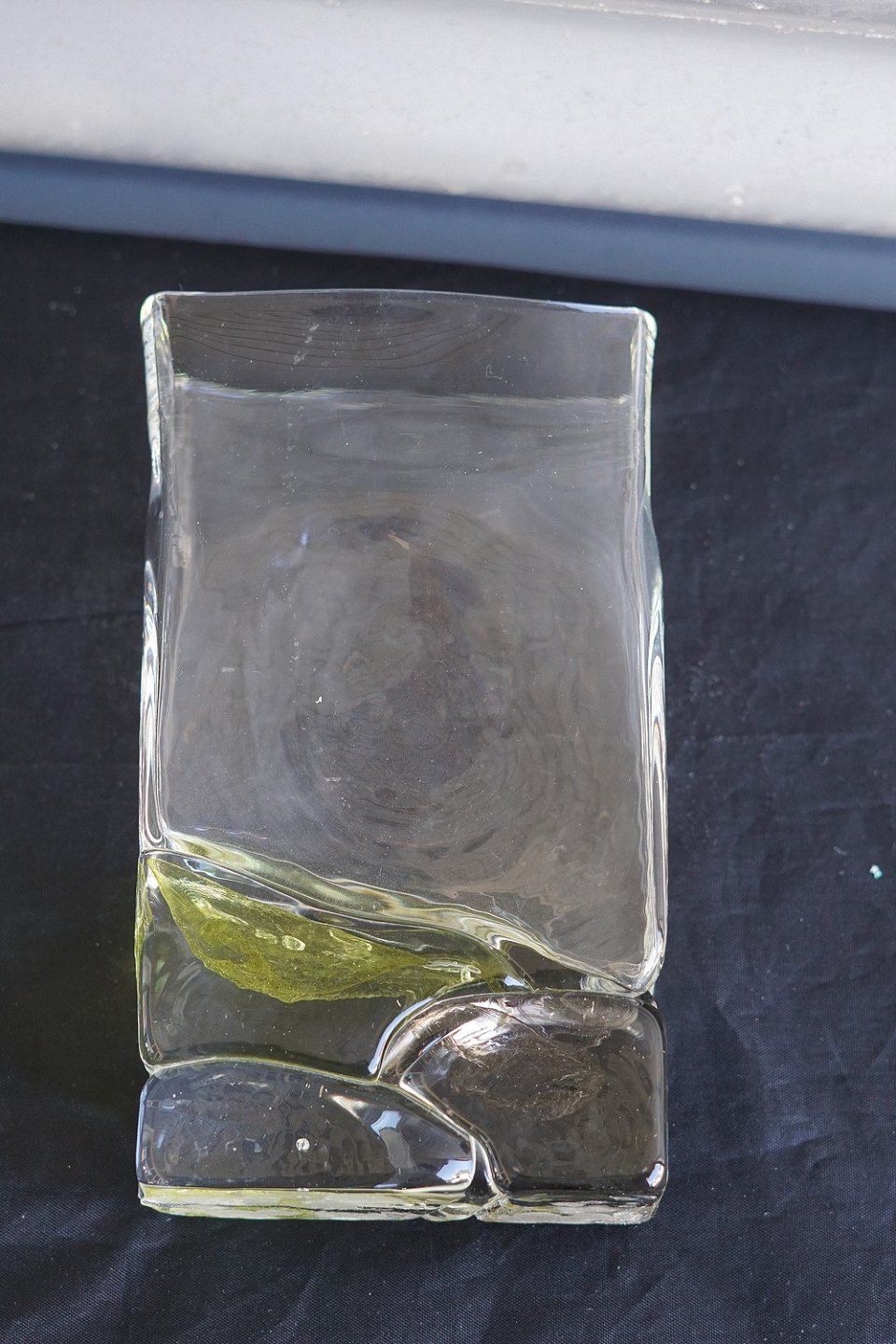 4-kantet glasvase, med lidt gult i bunden