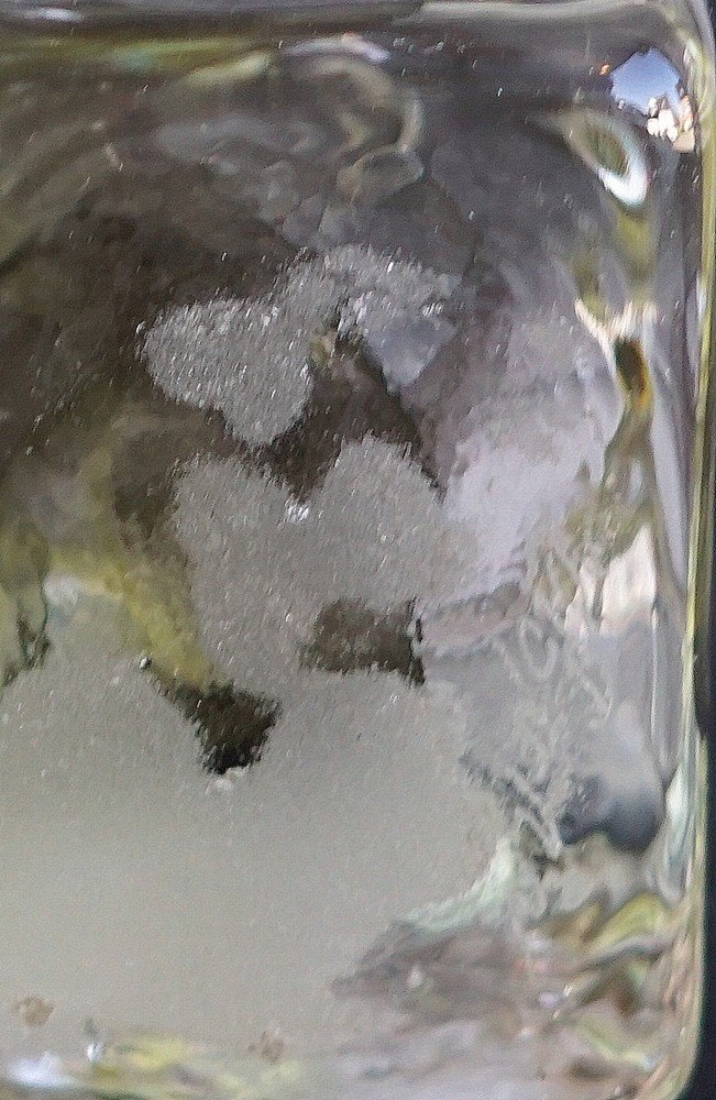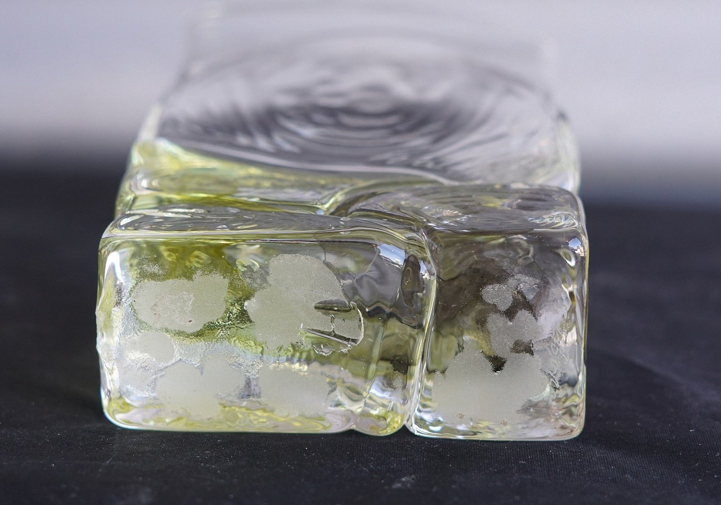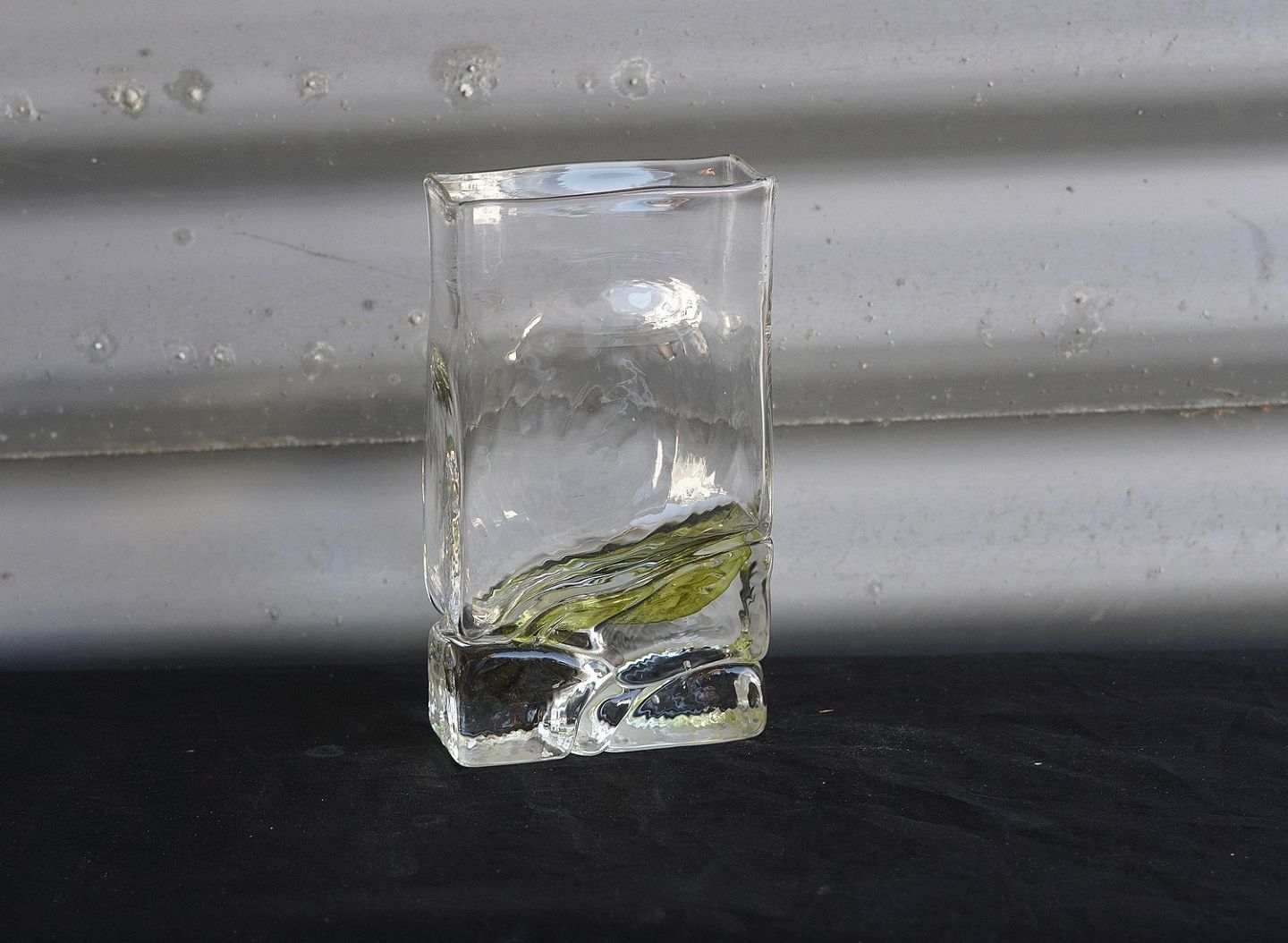 4-kantet glasvase, med lidt gult i bunden
