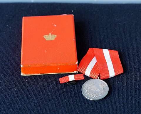 Frederik den 9. fortjeneste medalje, 11. marts 1953 og med knaphuls pynt, medaljen kommer i original æske.