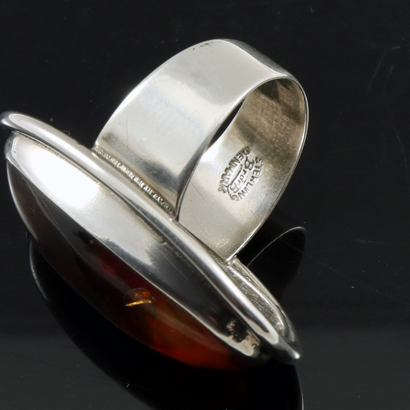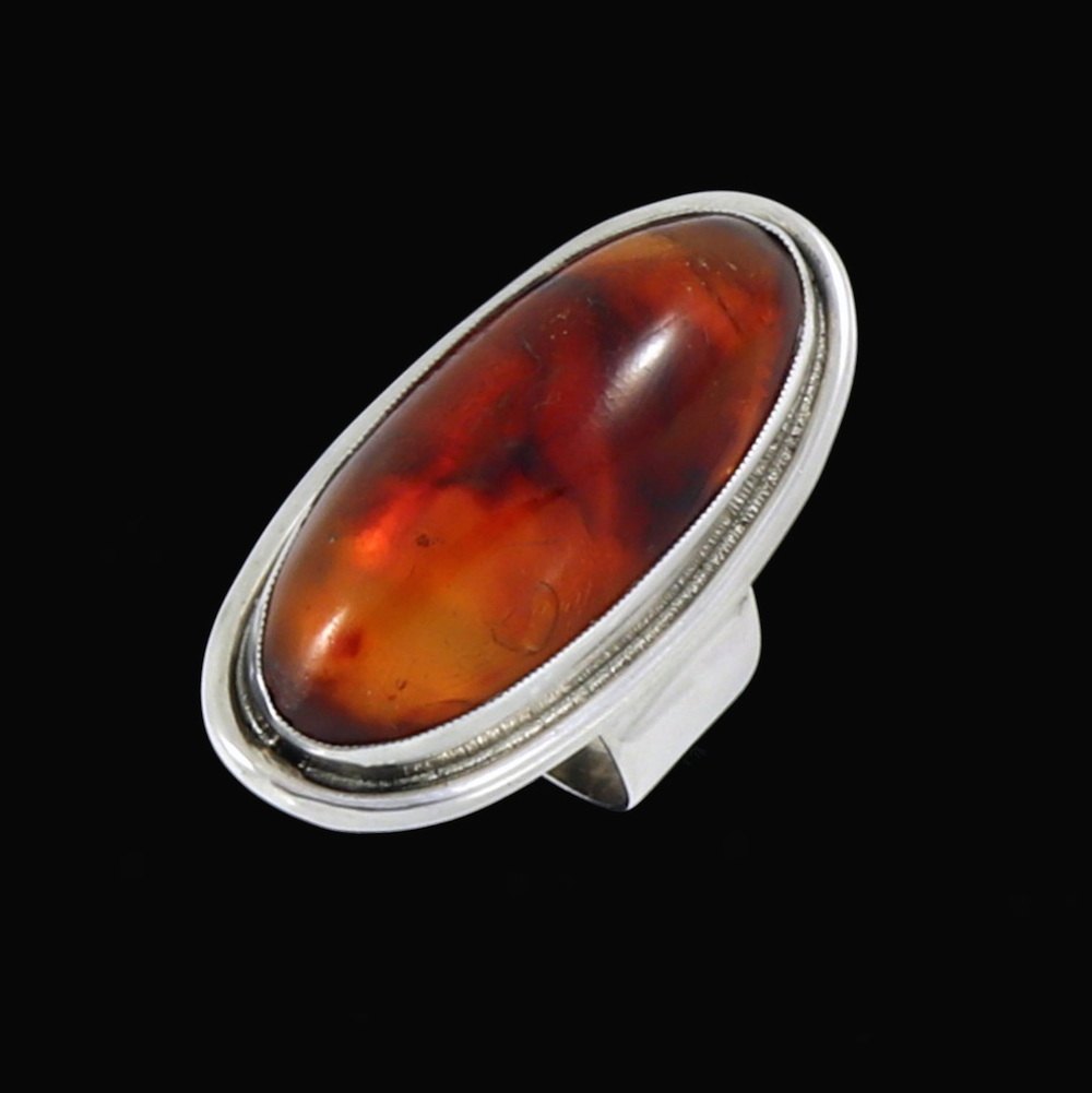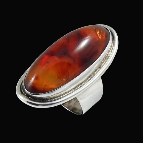Brdr. Bjerring. Ring i Sterling Sølv med rav.