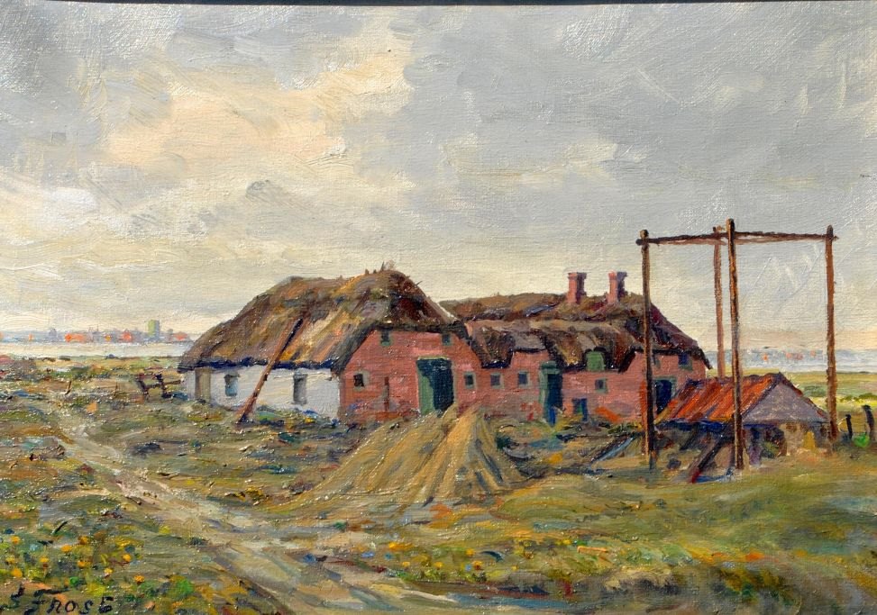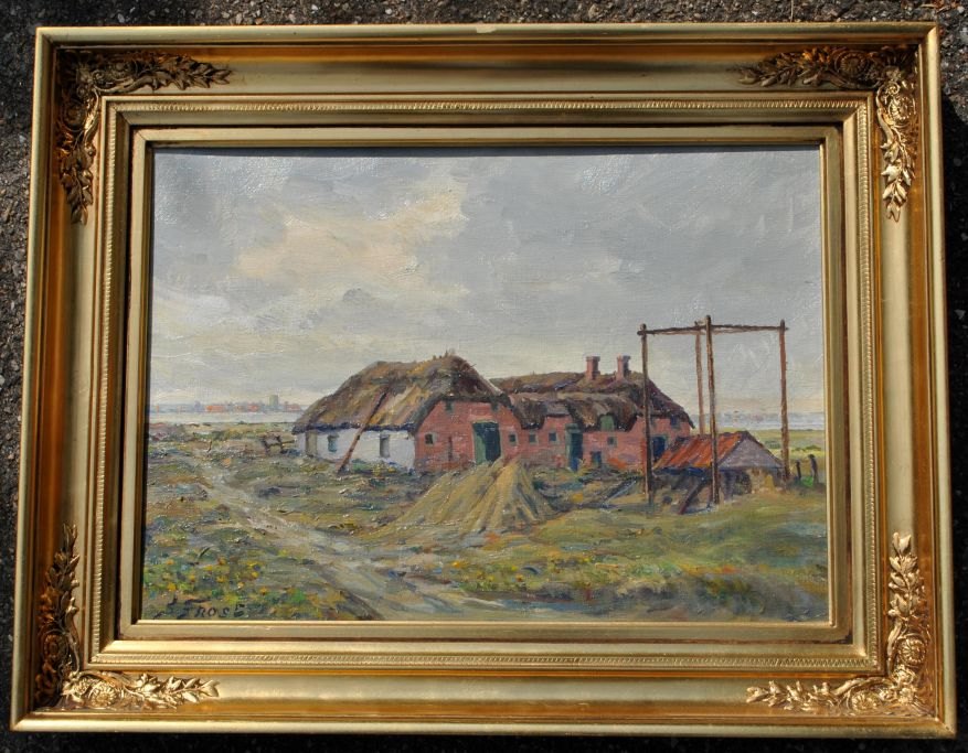 Frost, Sergius (1900 - 1994) Denmark: A farm, Klegod. Holmsland Klit. Signed. Oil on canvas. 33 x 45 cm.