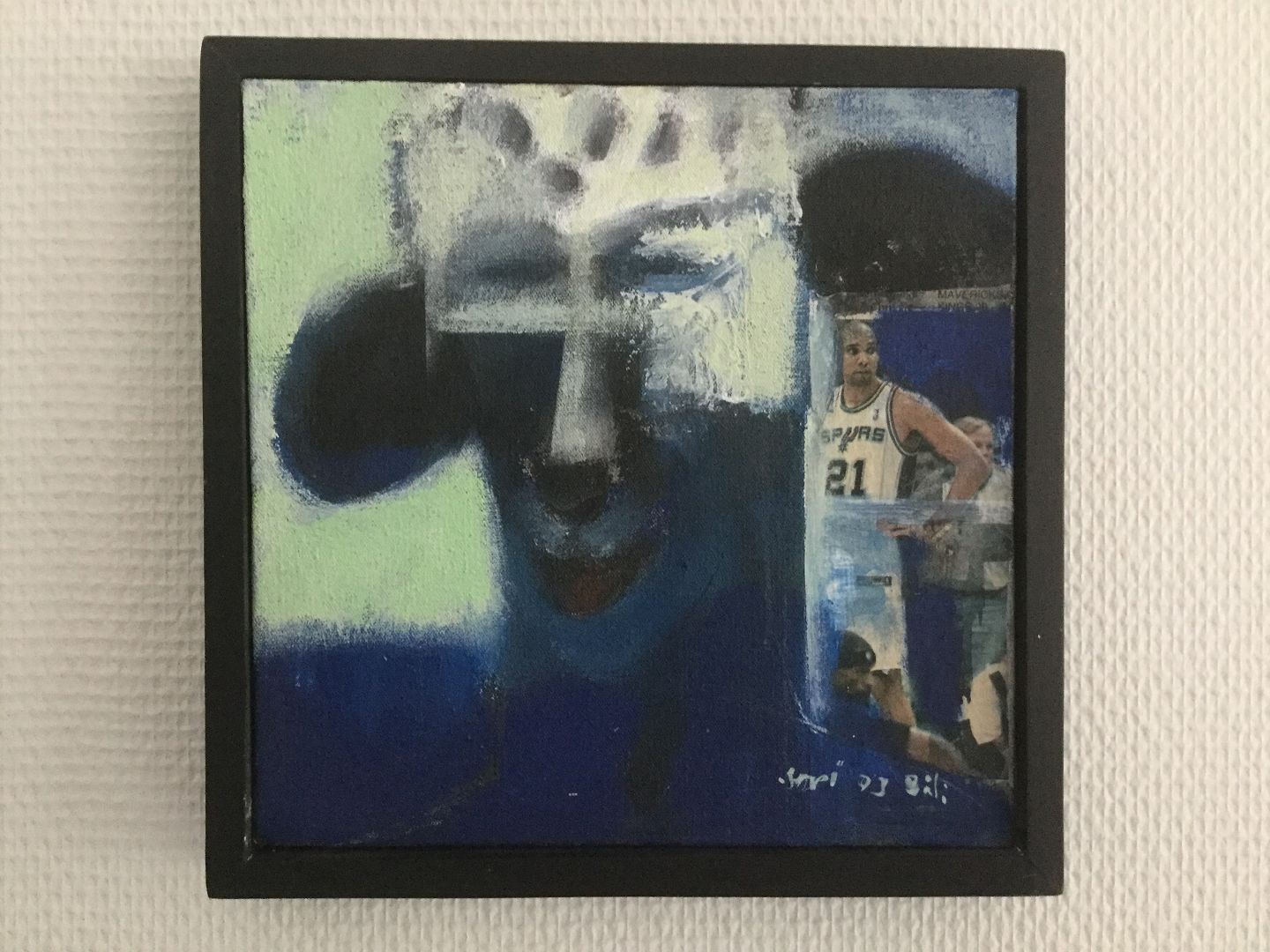 Komposition med ansigt og basketballspilleren Tim Duncan fra San Antonio Spurs 2003.