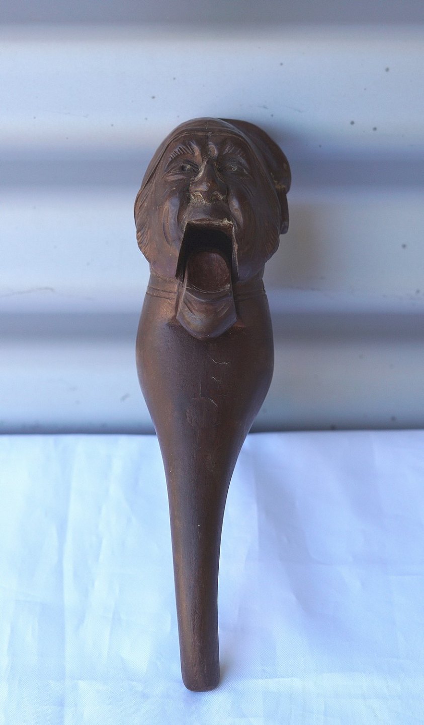 Nissehoved lavet som nøddeknækker, nødderknækkeren frem står med patina