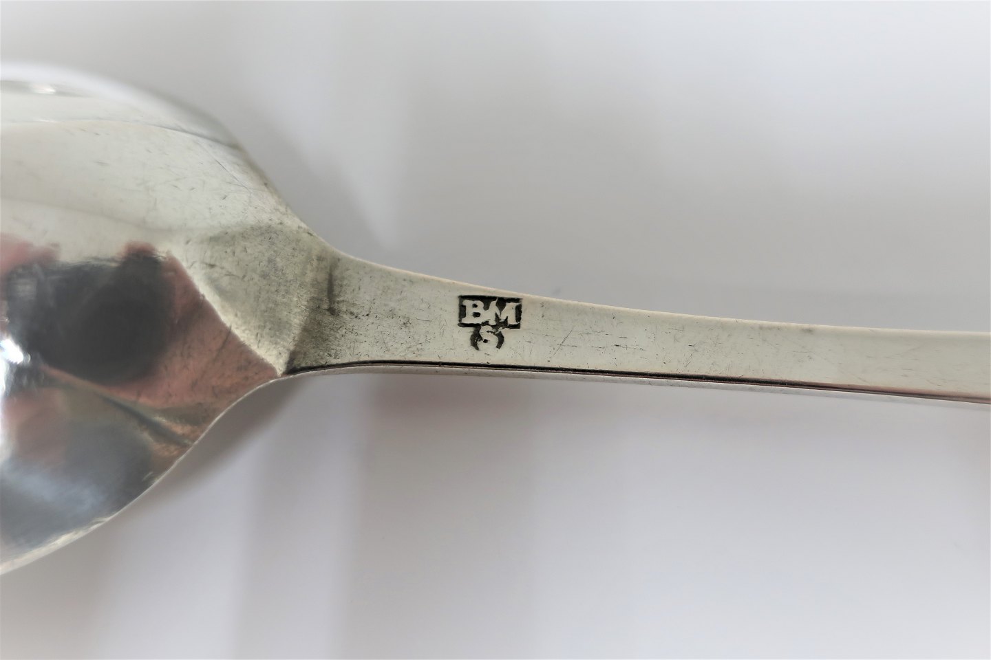 Ålborg. Sølvsmed Børge Mikkelsen. Antikke sølv bryllupsskeer produceret 1765. Længde 20 cm.