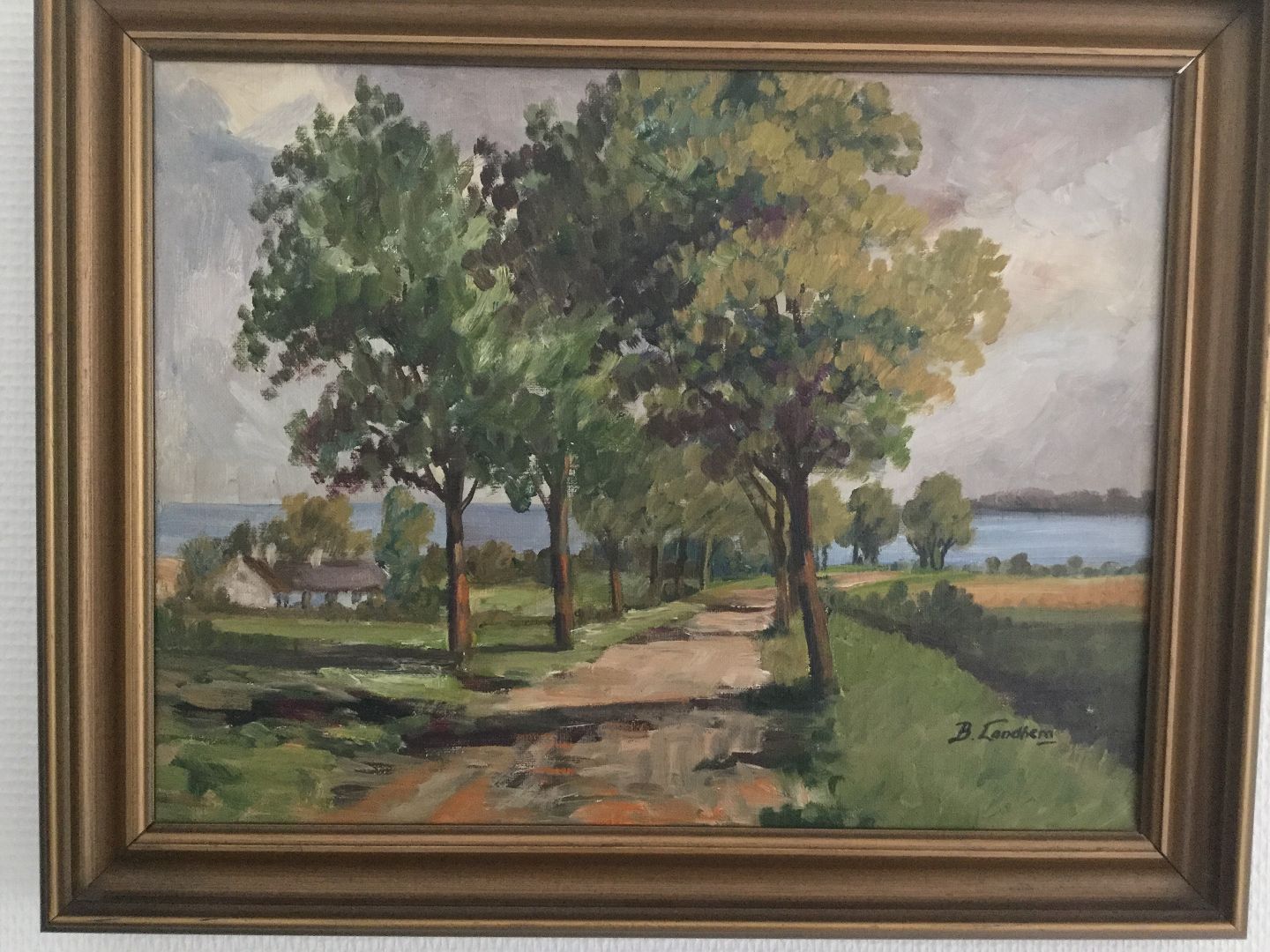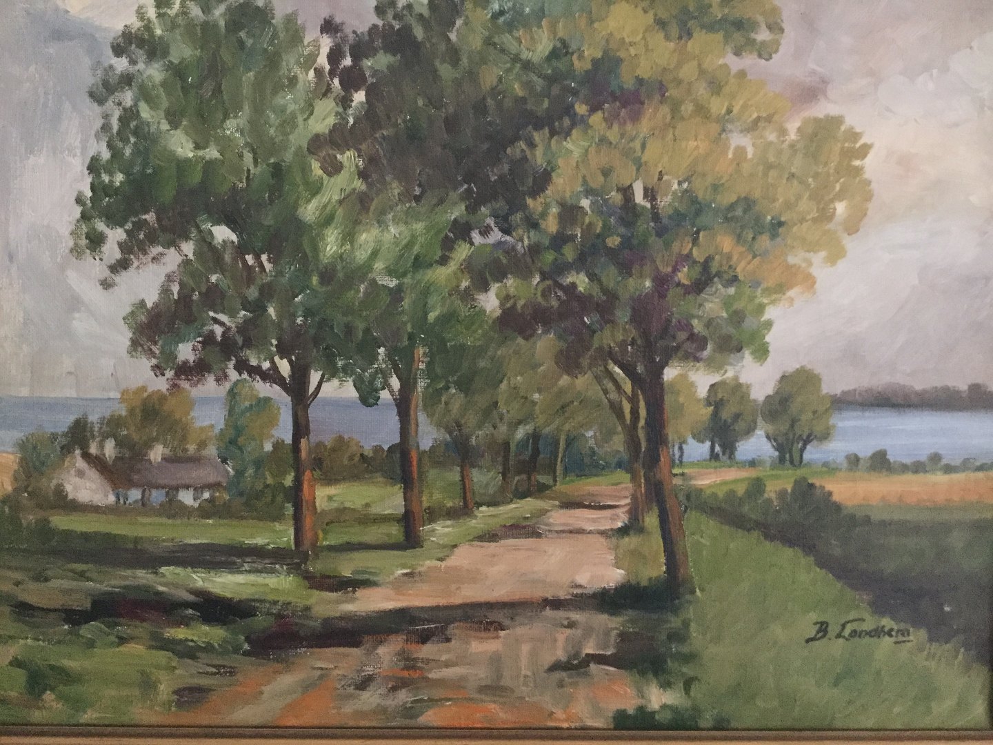 Maleri Bjarne Landberg - Udsigt udover Bramsnæsvig ved Køge Bugt 1954.