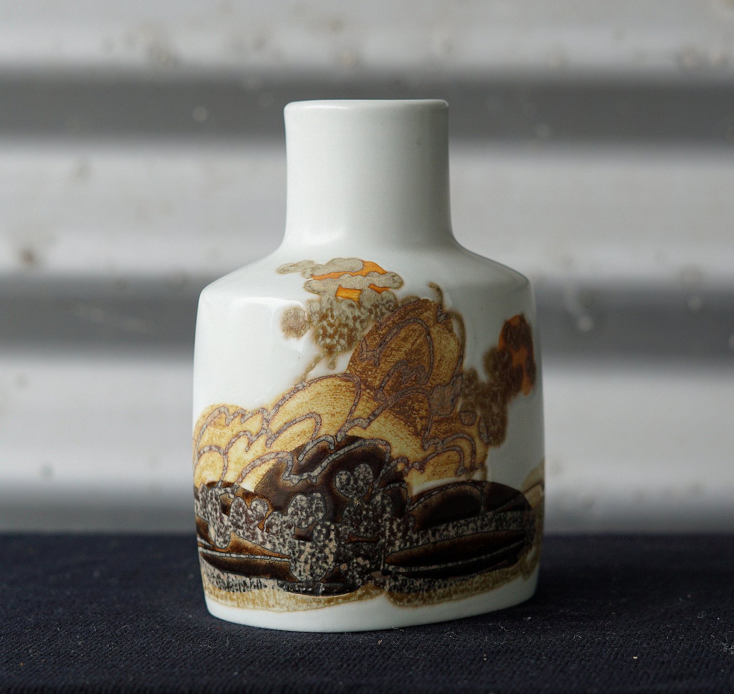 Baca-vase nr. 962/3207. Lille retro vase fra Royal Copenhagen formgivet af Ellen Melmer, der har dekoreret en del ting i 70'erne med gule, brune og orangefarver