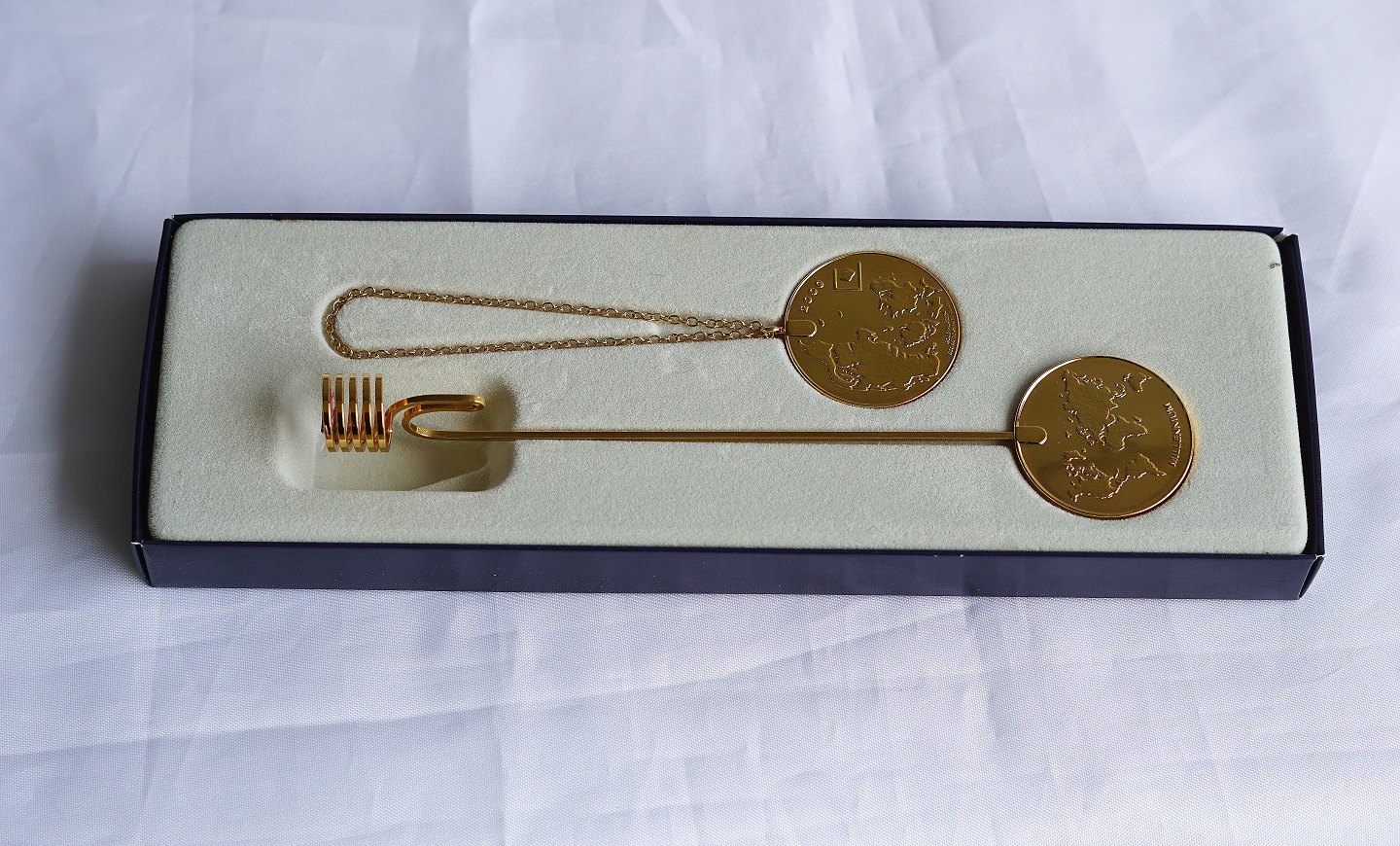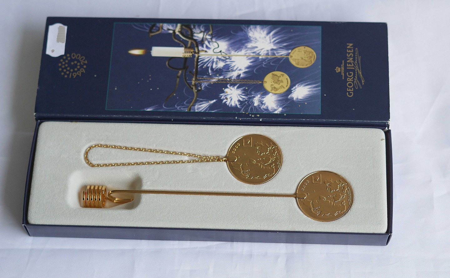 Millennium lysholder og ornament, fra serien Chrismas Nordica. Forgyldt messing