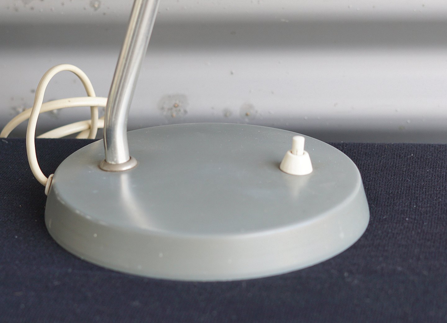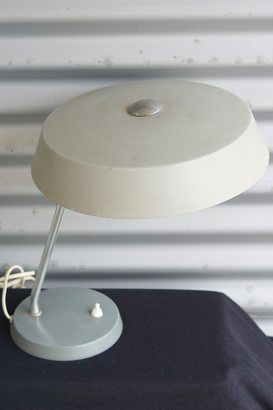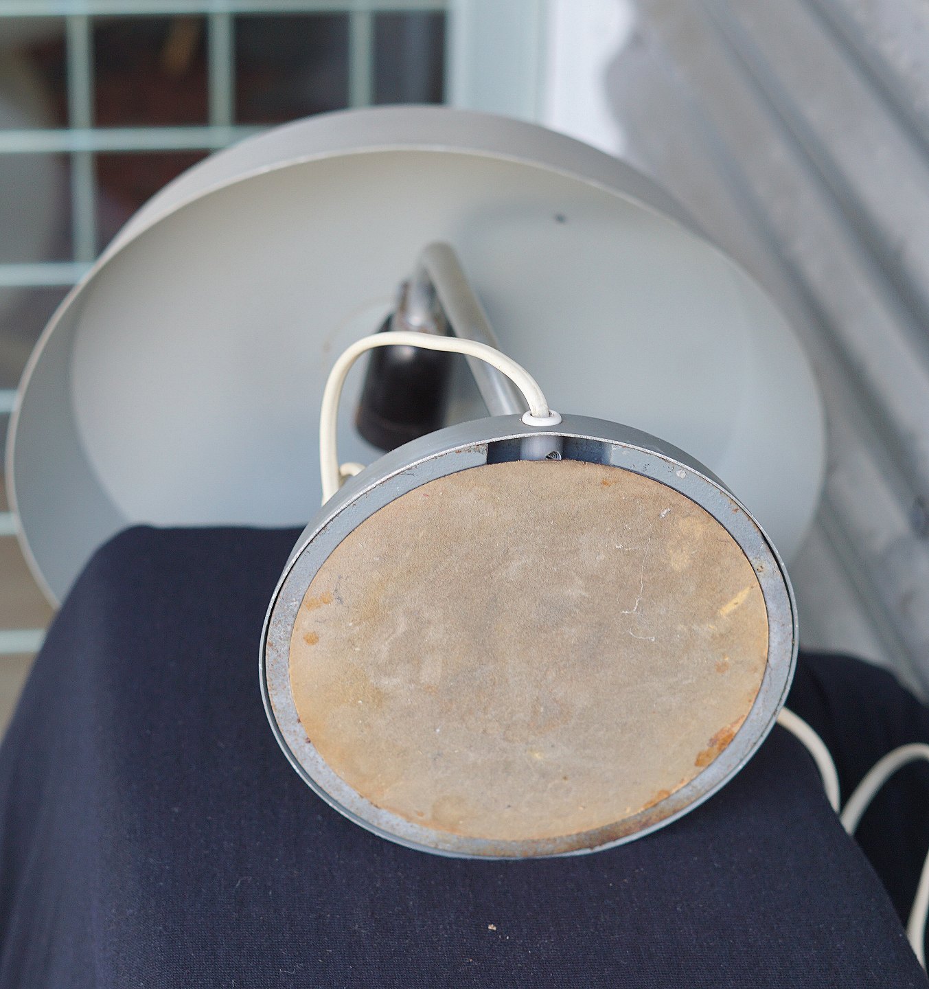 Tysk Industri lampe, fra DDR. Stål, der er malet mat gråt, lampen har patina, Stasi lampe