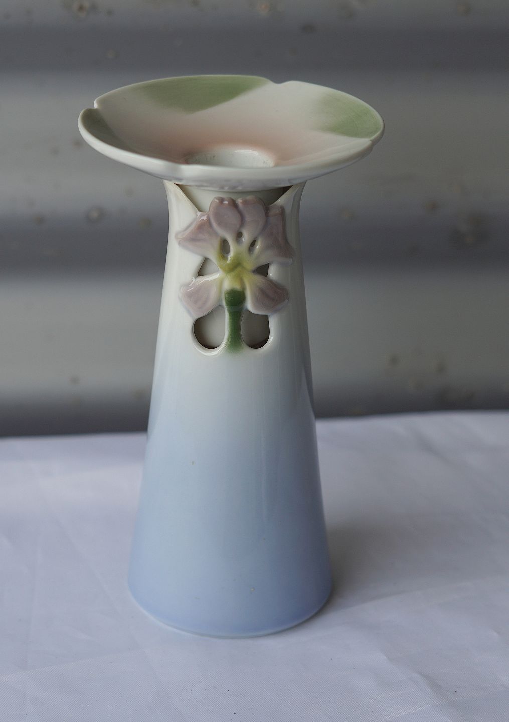 Kombineret vase (6488) og lysestage (6207), med blomster. Lavet i Limited Edition 1988, Leverandør til Hendes Majestæt, Dronning af Danmark