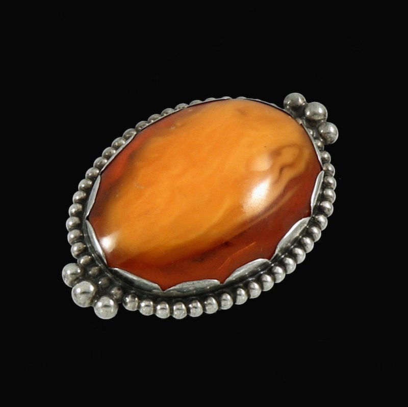 Kay Bojesen. Skønvirke Broche i Sølv med rav.