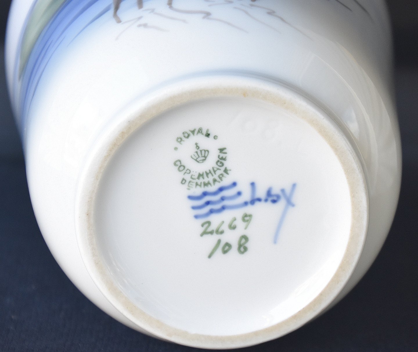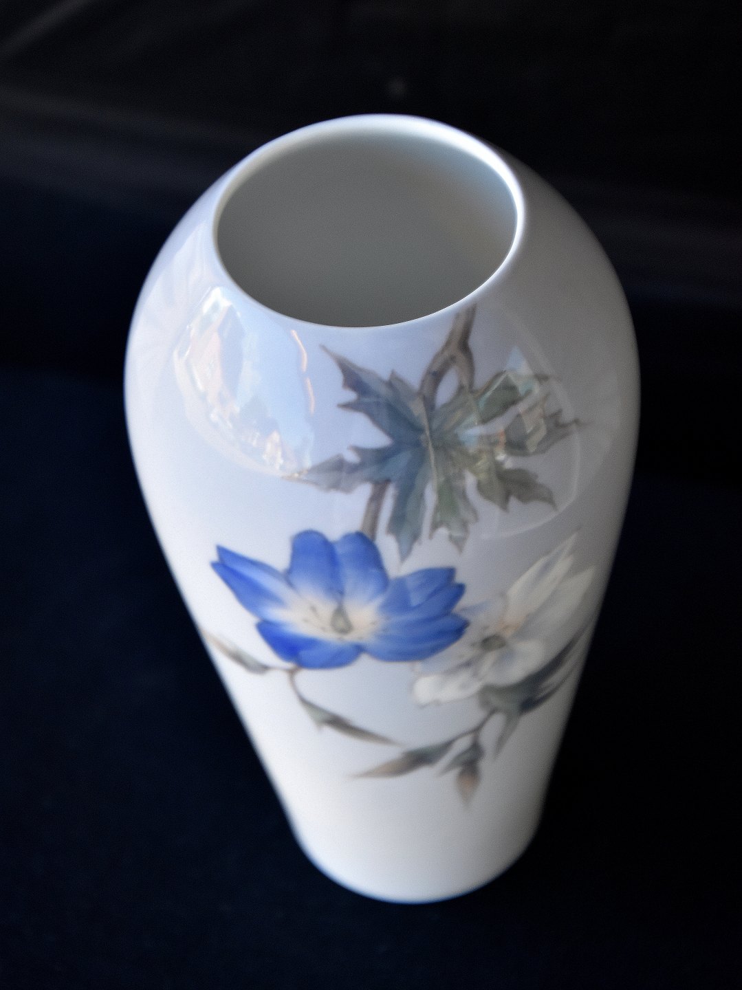 Royal Copenhagen, RC, Den Kongelige Porcelænsfabrik, KGL., blomsterranke, blå, hvide, blomster, vase, porcelæn