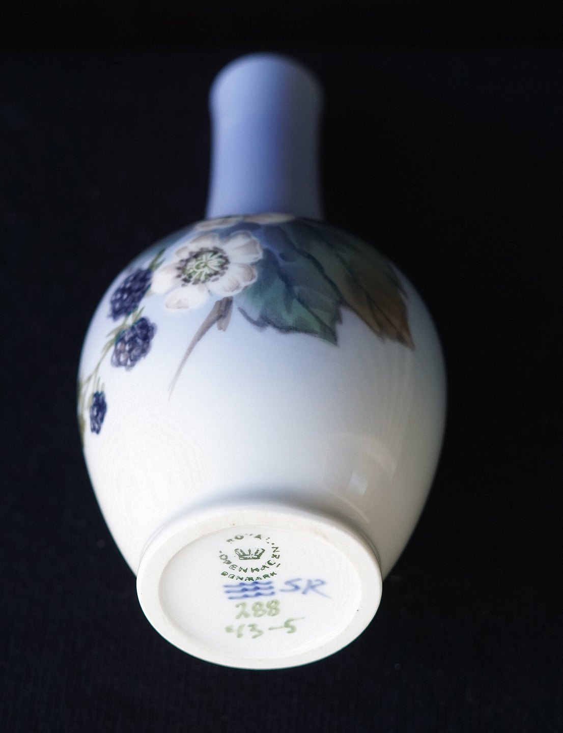 Royal Copenhagen, vase 288/43-A. Vasen er dekoreret med en brombærranke, med bær og blomster