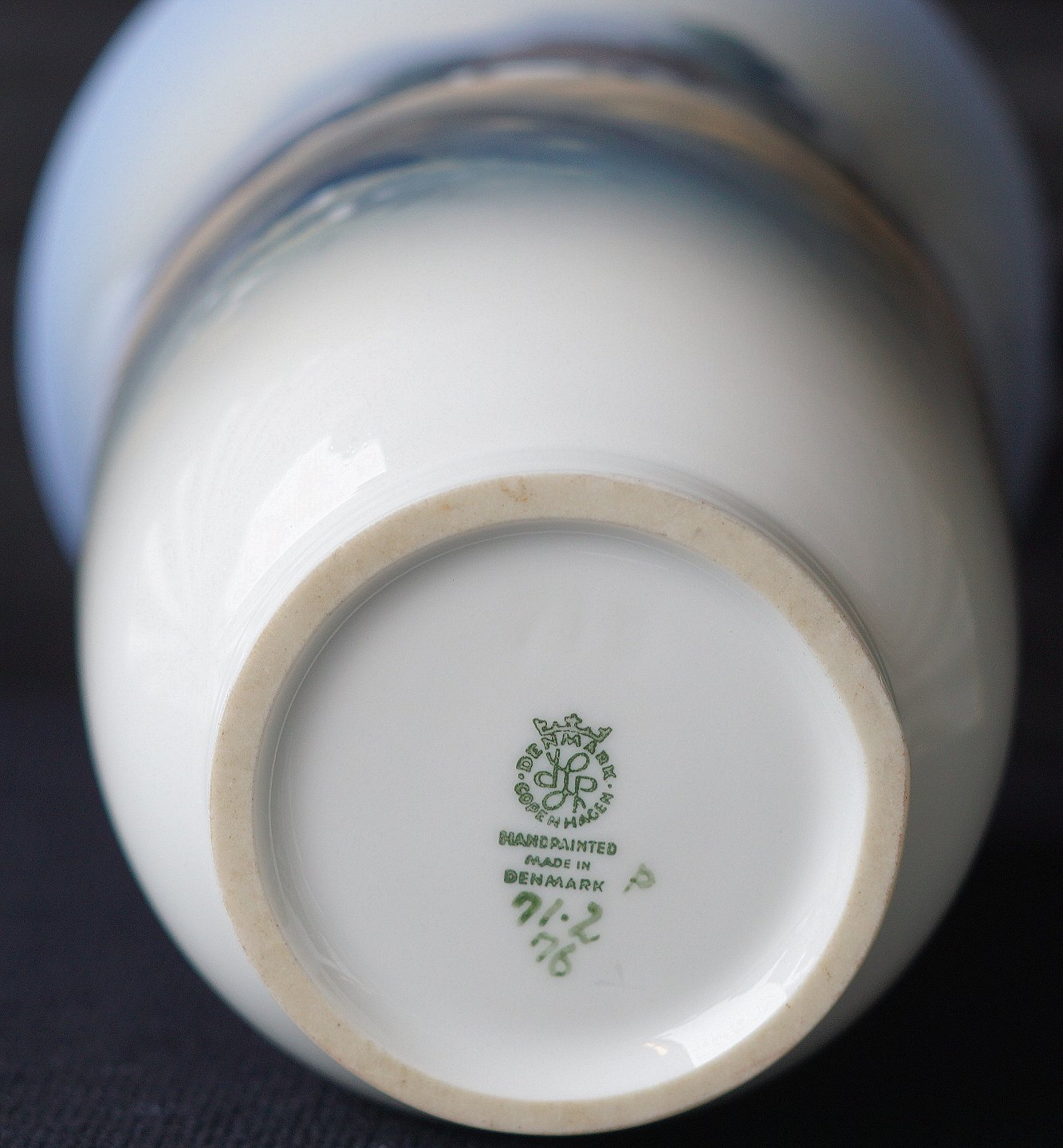 Lyngby Porcelæn, Lyngby. porcelæn, vase, landskab, stråtækt hus, håndmalet