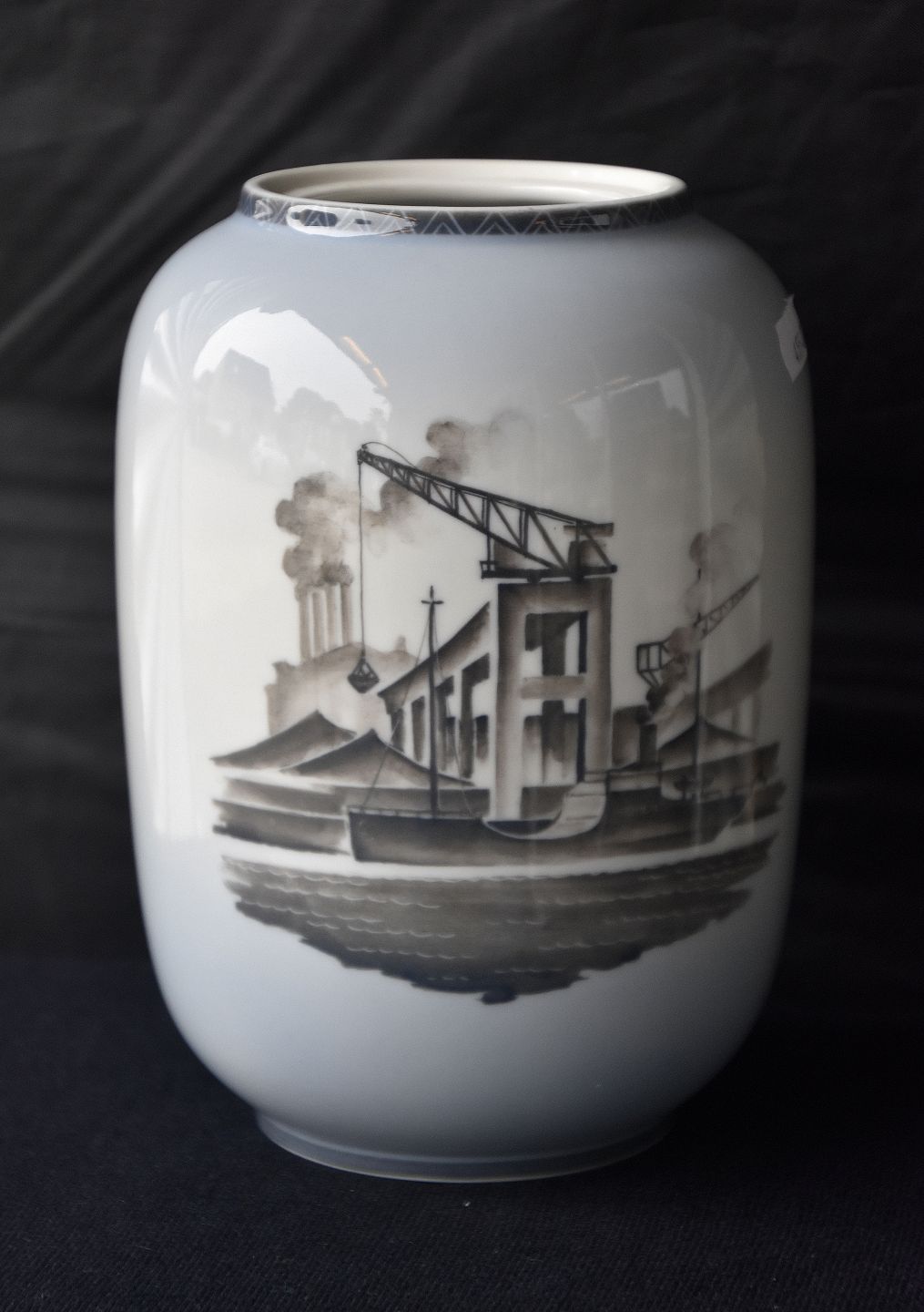 Bing & Grøndahl, vase Made in Denmark, 1. sortering. Dekorationen på vasen er et stiliseret værftsbillede