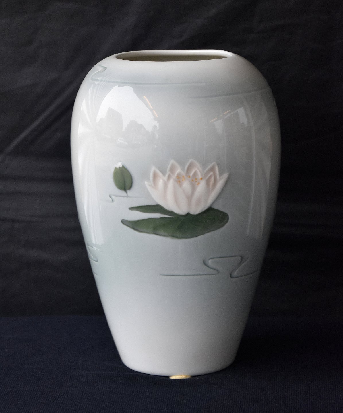 Bing & Grøndahl, vase 6436, 1. sortering. B&G vase dekoreret med åkandemotiv