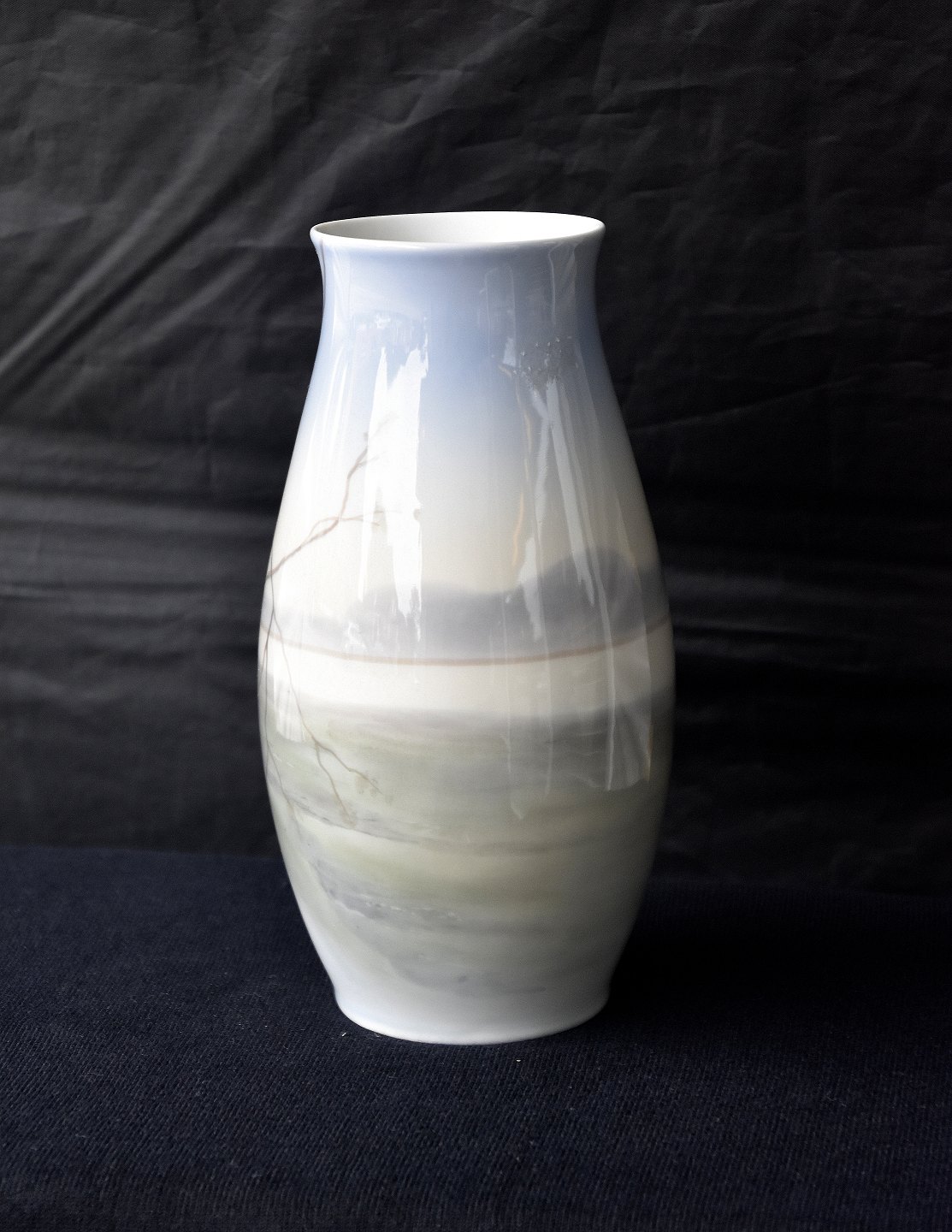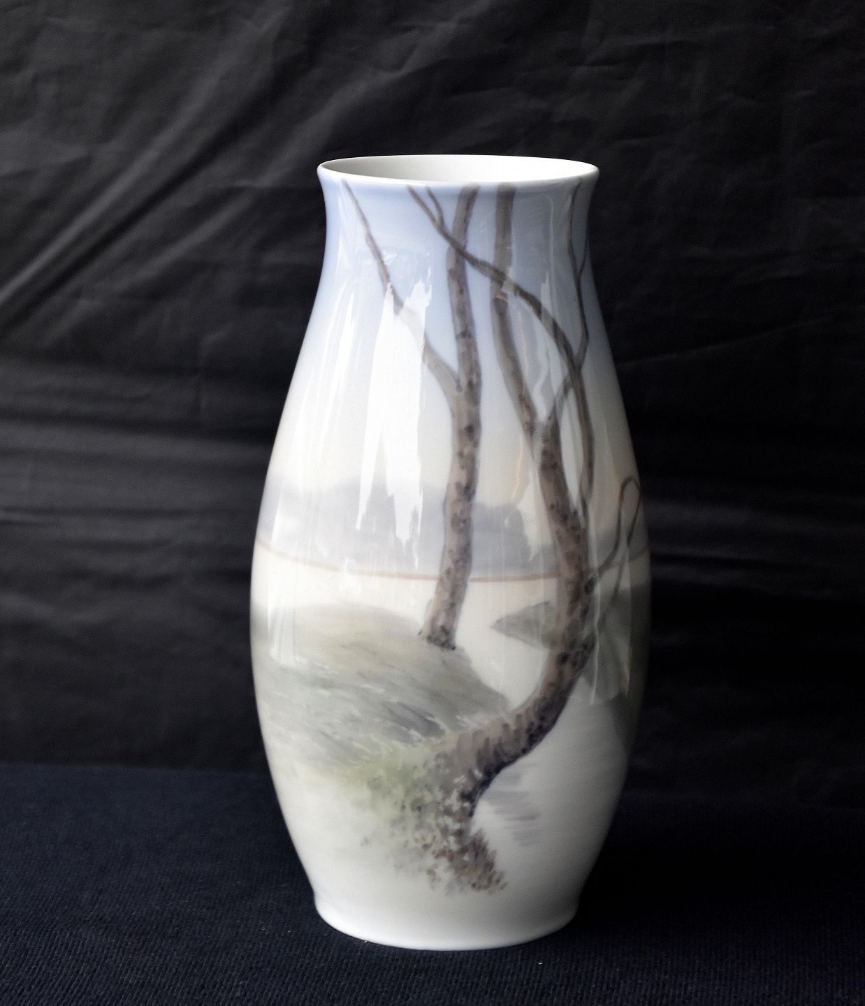 Bing & Grøndahl, vase 601-5249, 1. sortering. Motivet er åløbskant med 2 udgået træer