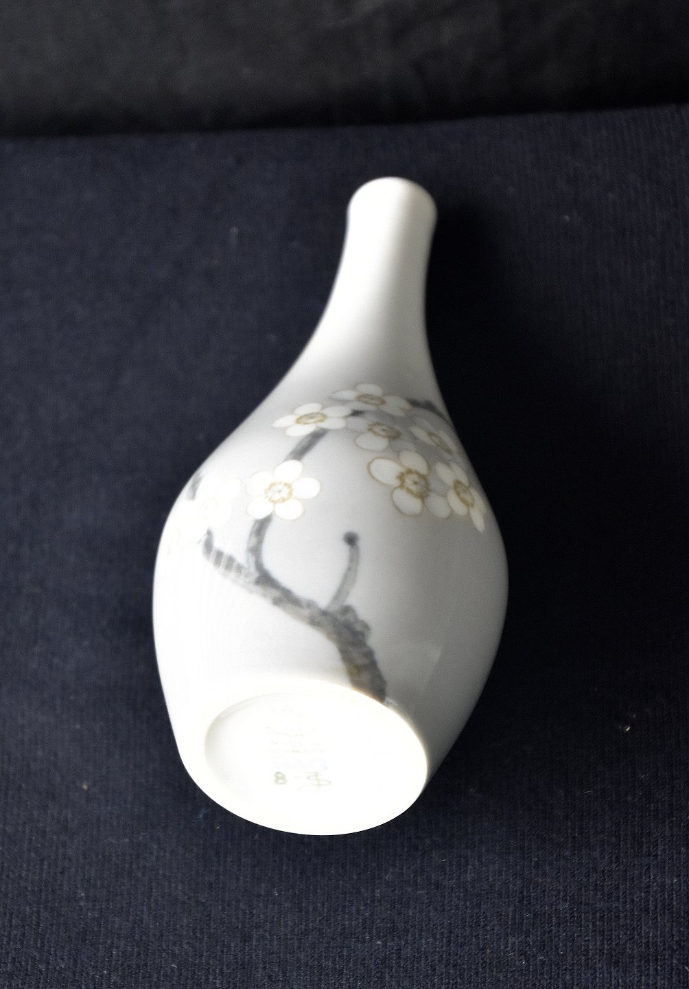 Bing & Grøndahl, vase 8-JS, 1. sortering. Vasen er dekoreret med små hvide blomster på en gren