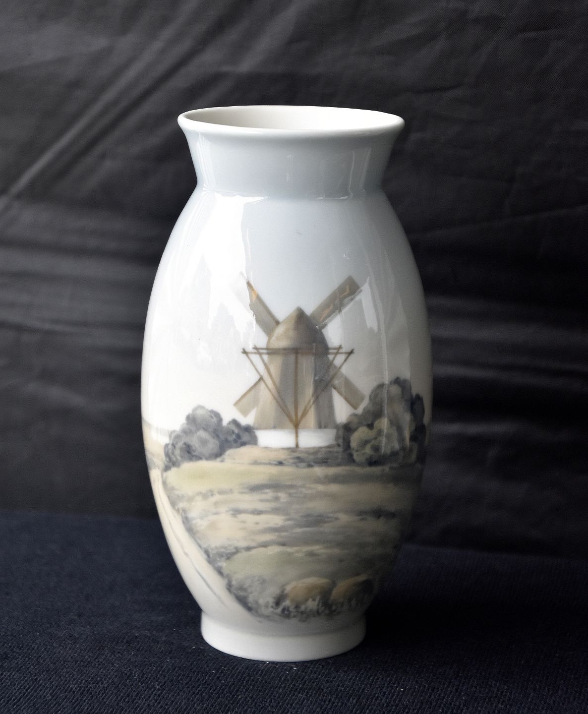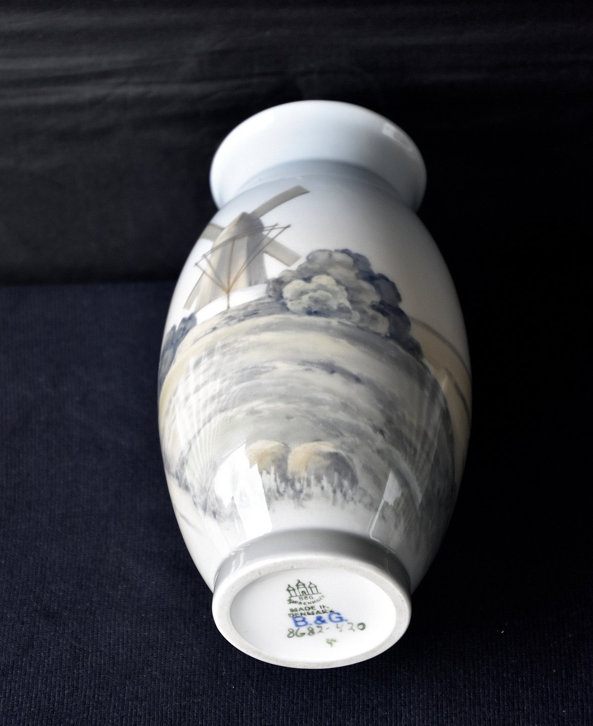 Bing & Grøndahl, B&G, porcelæn, vase, landskab, vindmølle