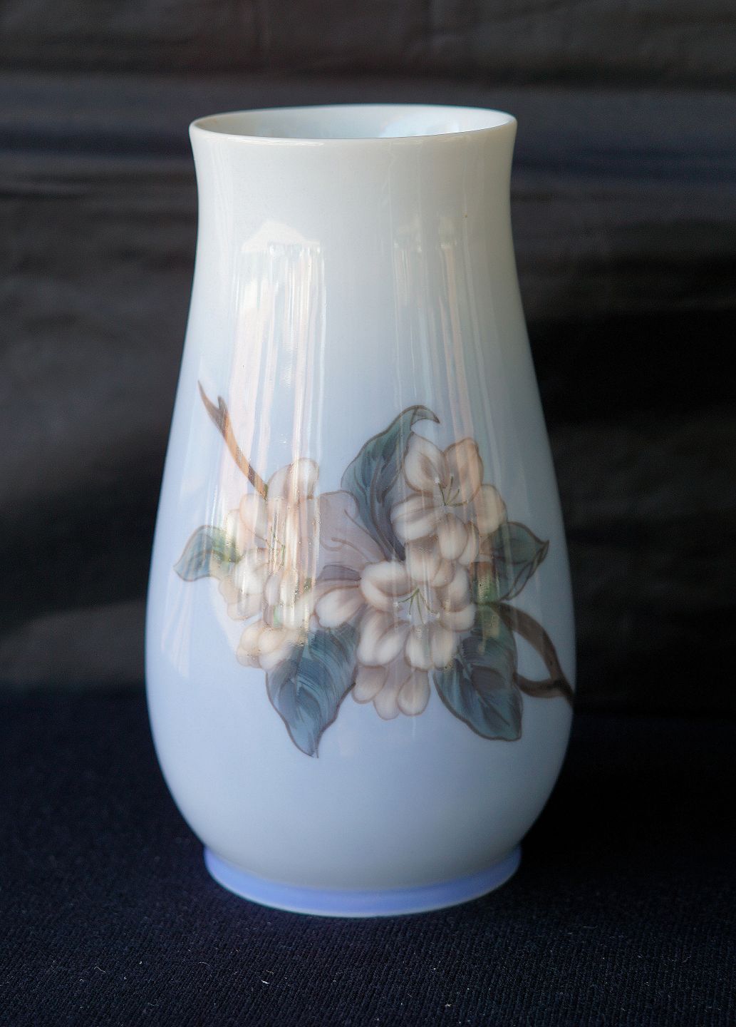 Bing & Grøndahl, B&G, vase, porcelæn, hvid, blomster, magnolia
