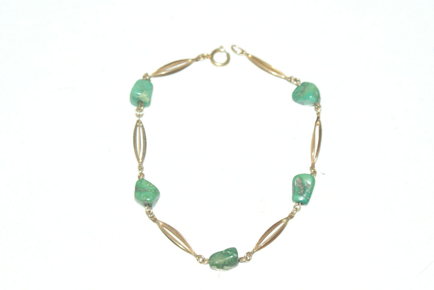 Elegant Guld Armbånd med grøn tyrkis sten 14 karat